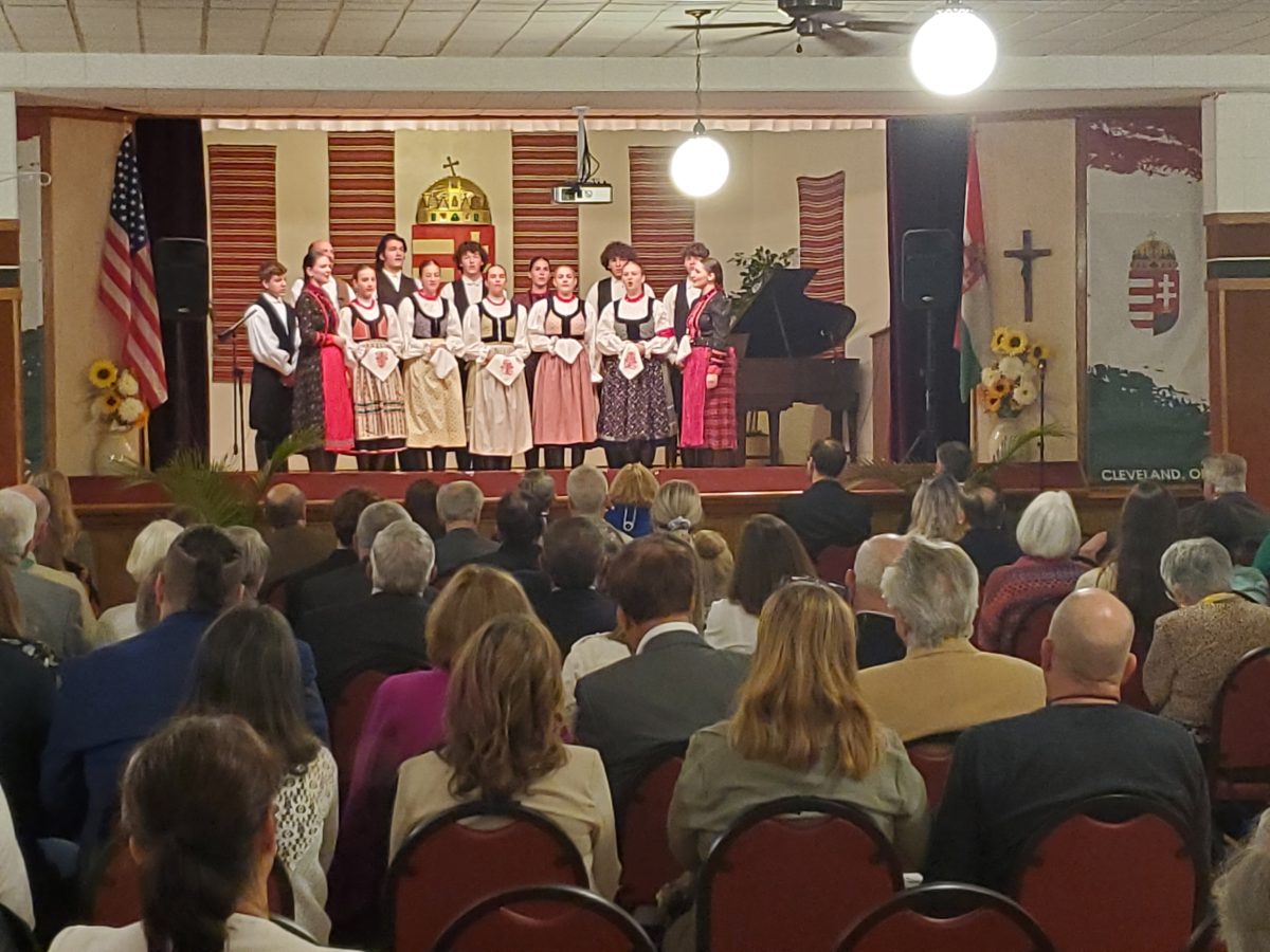 Cleveland’s Hungarian community held its commemoration of the 1956 revolution and freedom fight on Sunday, Oct. 20, 2024, in the St. Emeric Church Parish Hall. Organized by the United Hungarian Societies, the guest speaker was Eva Orszag, a scout leader from Hungarian Scout Troop 33 and the daughter of a 1956-er. Other members of the Hungarian scout troops, the Hungarian School and the Hungarian Scout Folk Ensemble also performed poems, songs, and music. After the moving program there was time for food and fellowship for all those in attendance.