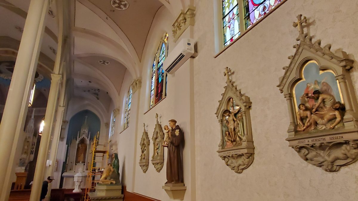 (2) We are not forgetting the other needs of the parish either. For example, a few weeks ago we received $11,000 from Bethlen Gábor Foundation in Hungary (BGA) for roof repairs (by the stained glass windows, the drainage pipes, and vents) and for repairing the water damage in the Mindszenty Memorial Room. We have already begun to look at our possibilities in repairing the steps in the church inside stairwells and perhaps next year some sidewalk repairs can be accomplished as well. We continue to do maintenance on the church: we have fixed electrical problems with certain lights in the hall; lights in the kitchen and the outside lights were fixed and switched to LED to save us on electricity. A non-functioning motor in one of the kitchen stove exhaust was replaced as well. Additionally, several volunteers have been working on cleaning and making our church surroundings look beautiful. There is always work to do around the church and I am very grateful to those who lend their time and efforts in helping the parish. If you are able to help with some of the work or know someone professionally whom we could ask, please let us know. Your continued support toward St. Emeric Parish is always greatly appreciated. Please continue to use the various possibilities for giving. Thank you for all your caring, Fr. Bona