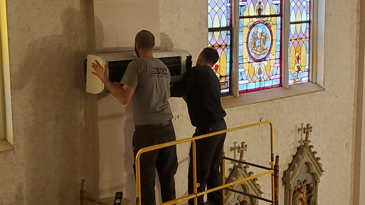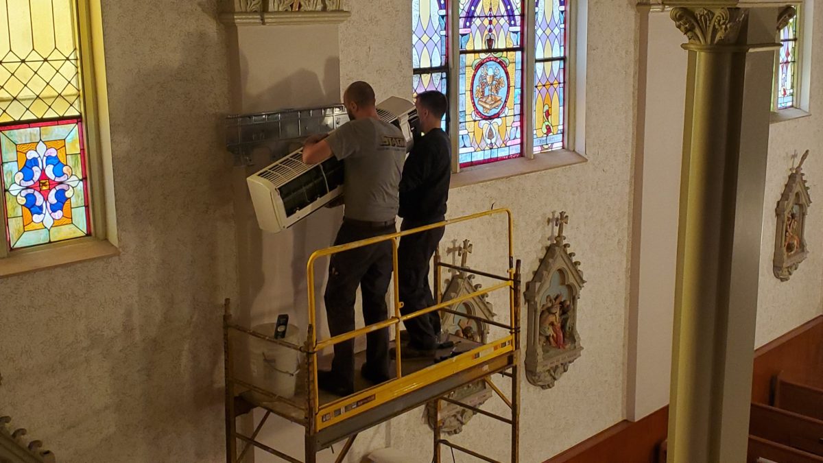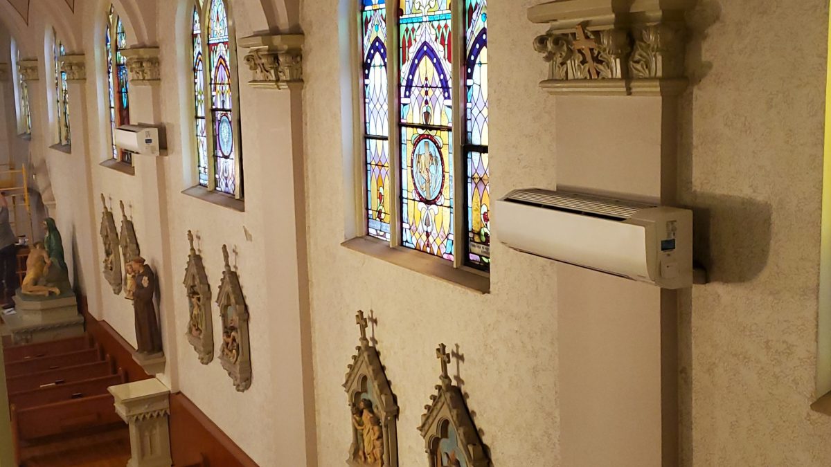 In lieu of installing central air conditioning, which would cost hundreds of thousands of dollars, we have received estimates to install whisper silent, esthetically pleasing, ductless air conditioning units in the church, three on each side of the walls between the stained-glass windows and one unit in the organ/choir loft. The cost for this project would be just over $79,000.
