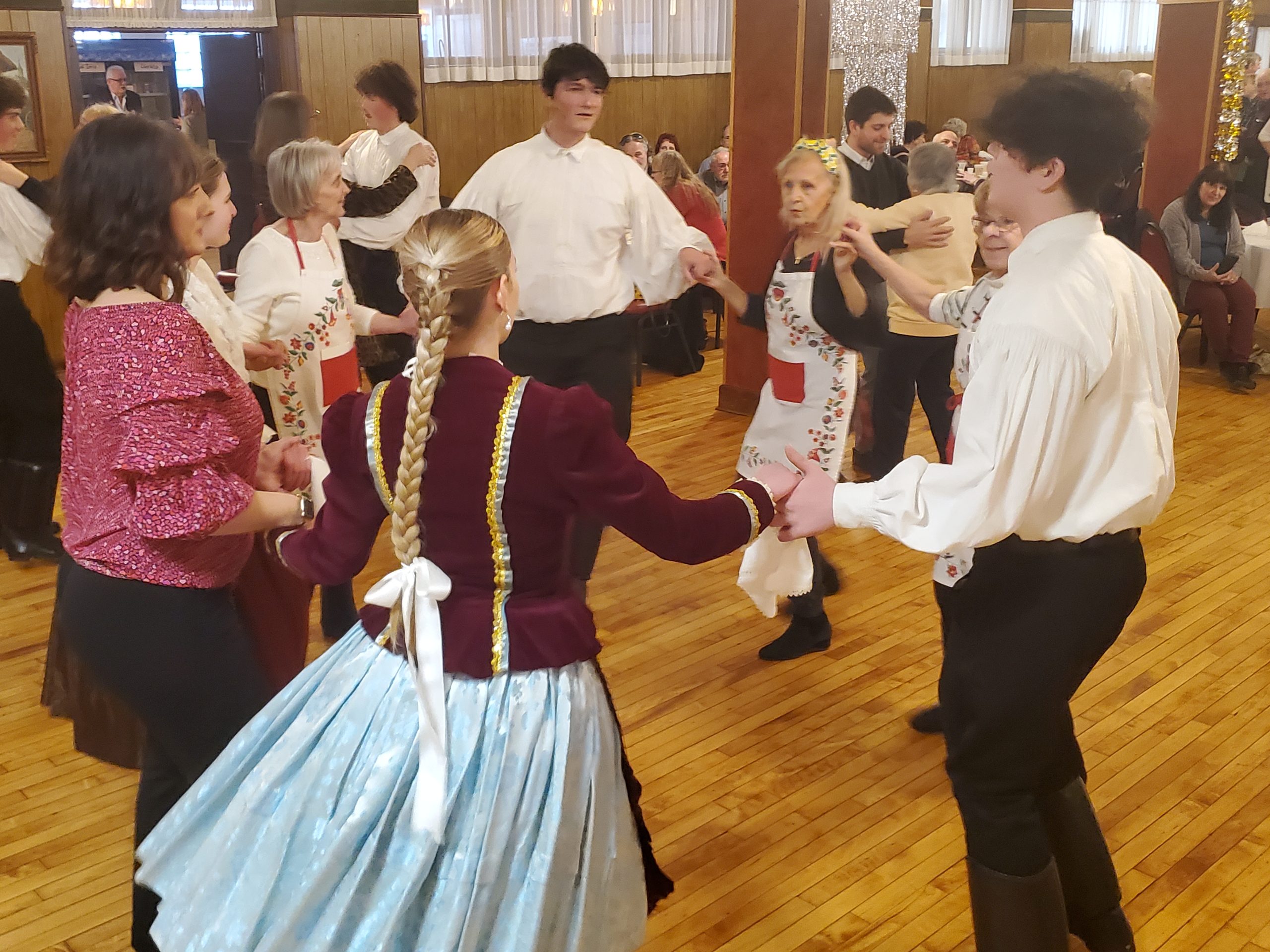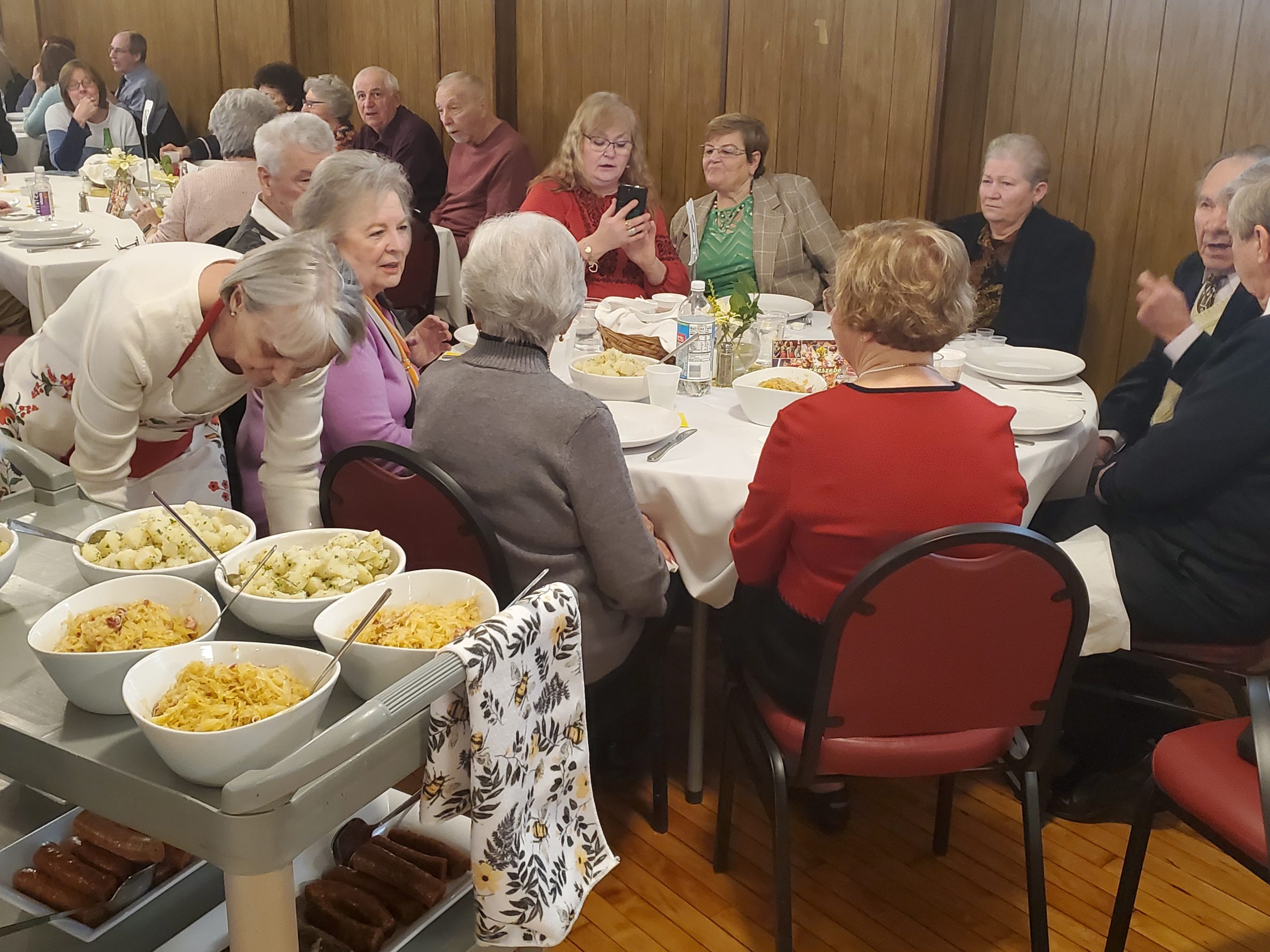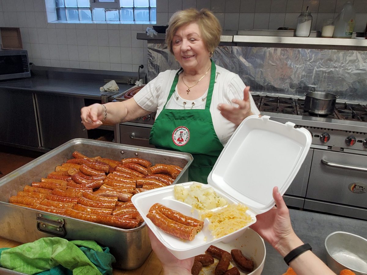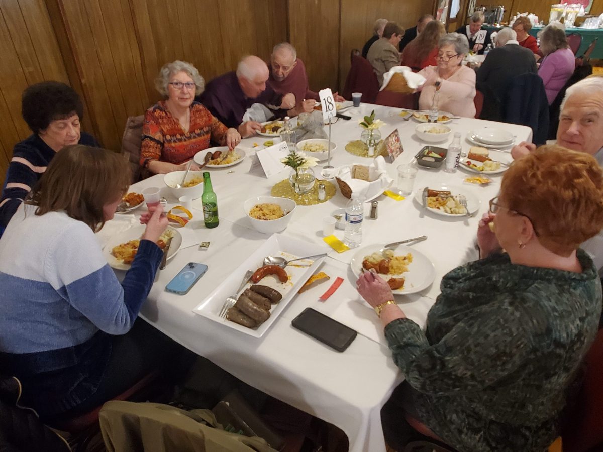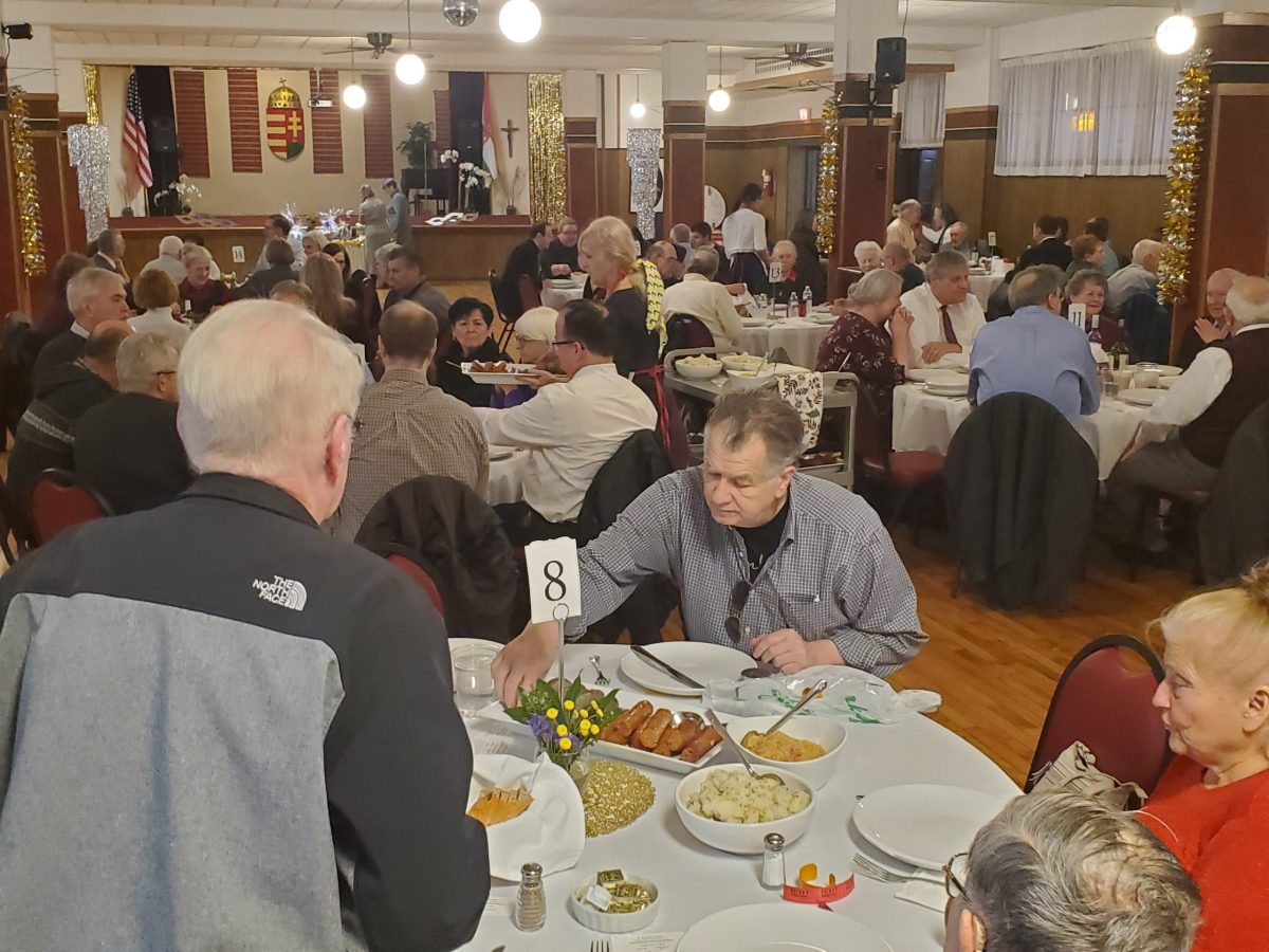 A Carnival pork sausage dinner was held in St. Emeric’s Church Hall on February 4, 2024. The main course was very tasty, freshly made, pork and rice-liver sausages. The hall was nicely decorated for Carnival. The afternoon was made more entertaining by the raffle with baskets full of beautiful valuable items as prizes and the folk-dance performance by the Cleveland Hungarian Scout Folk Ensemble. It was a fun time for everyone!