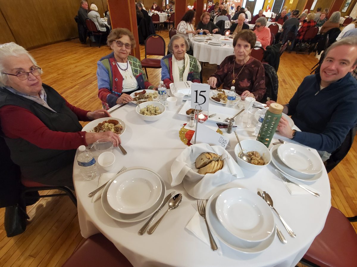 We held our annual pork sausage dinner in the Church Hall after Mass on Sunday, February 9th. On the menu: traditional chicken soup, entrée of pork and rice-liver sausages with side dish of parslied potatoes and ham hock braised cabbage. Dessert wss Mardi Gras style puff pastry filled with apricot jam and coffee. Dances by the Cleveland Hungarian Scout Folk Ensemble and a raffle of gift baskets rounded out the entertaining afternoon! Thank you to all of those who supported the Church with their participation.