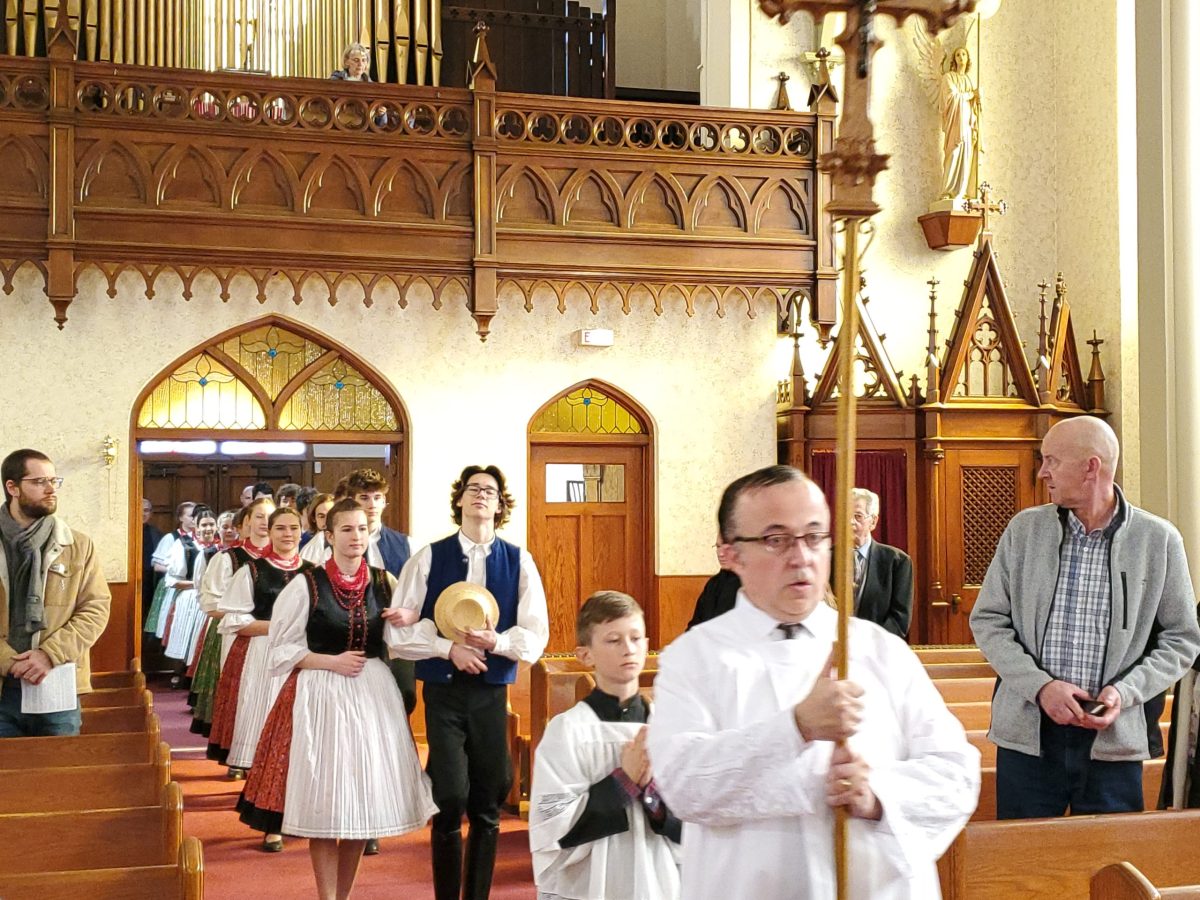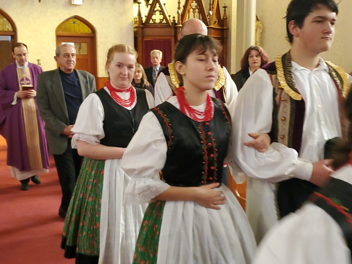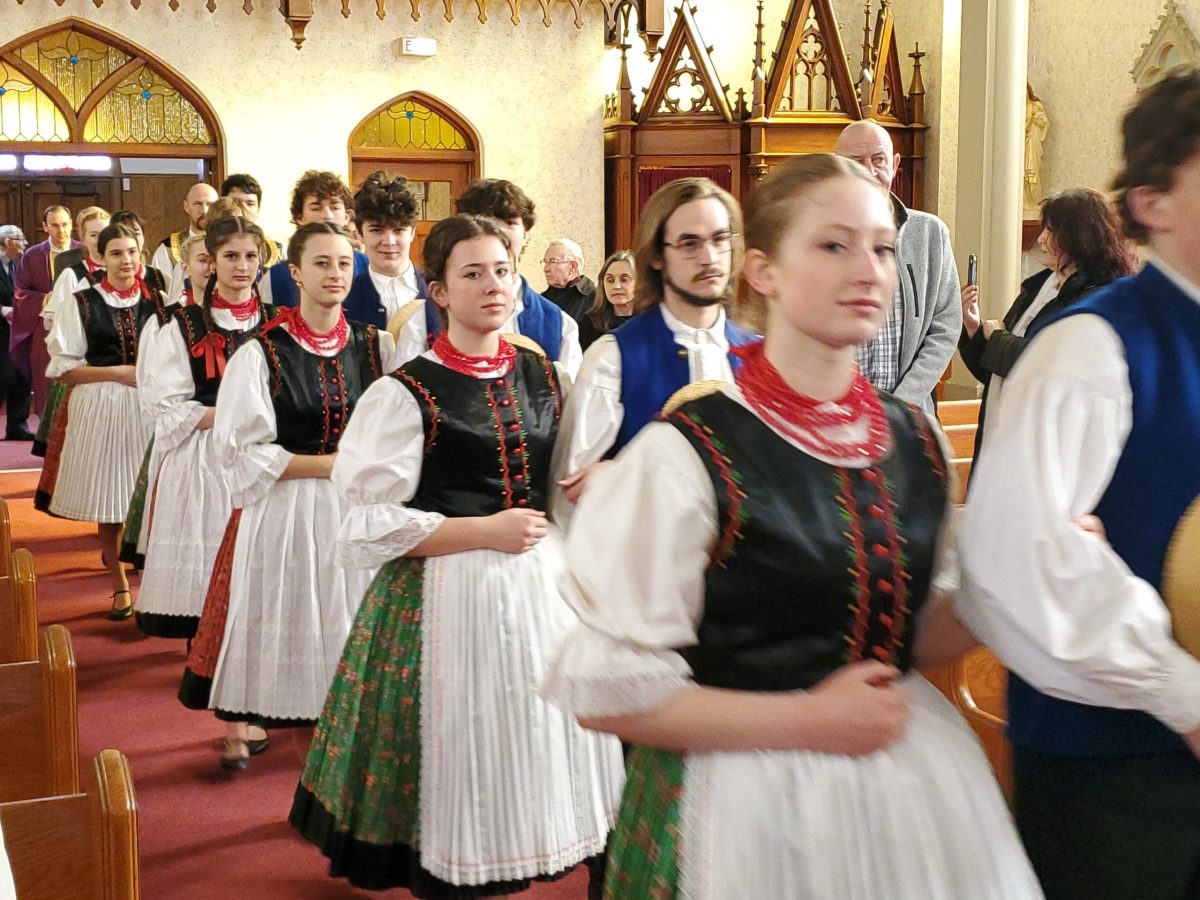 FOLK ENSEMBLE MEMBERS ATTEND MASS IN FOLK COSTUMES