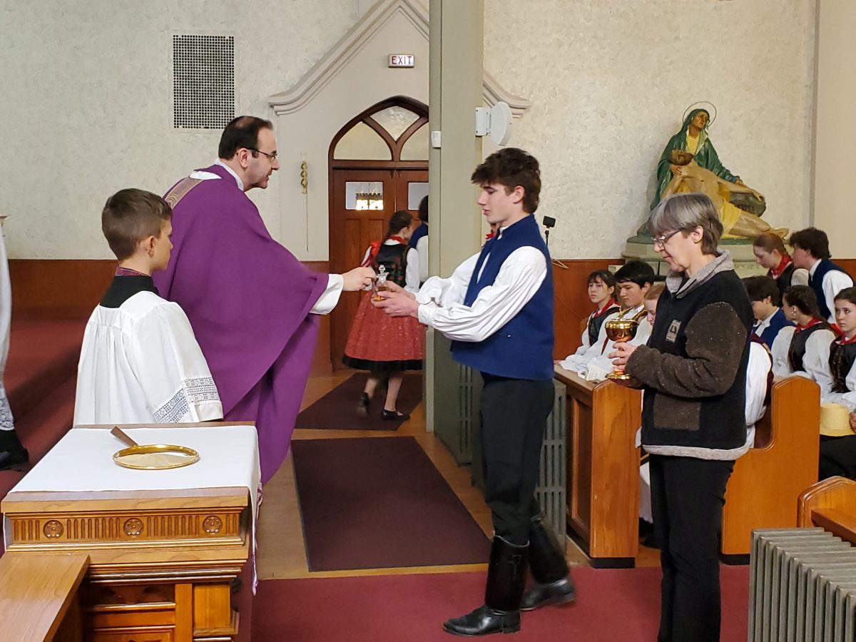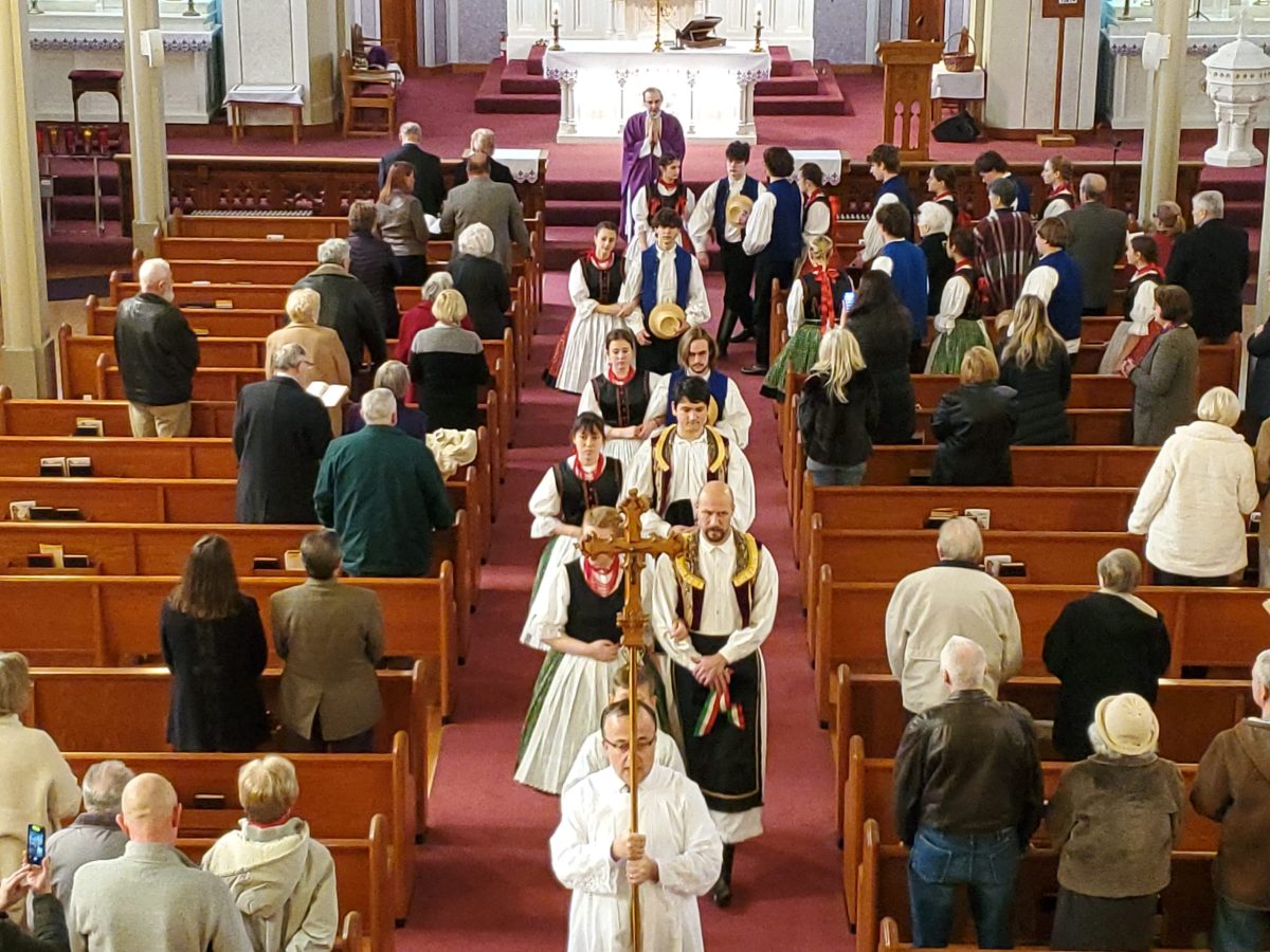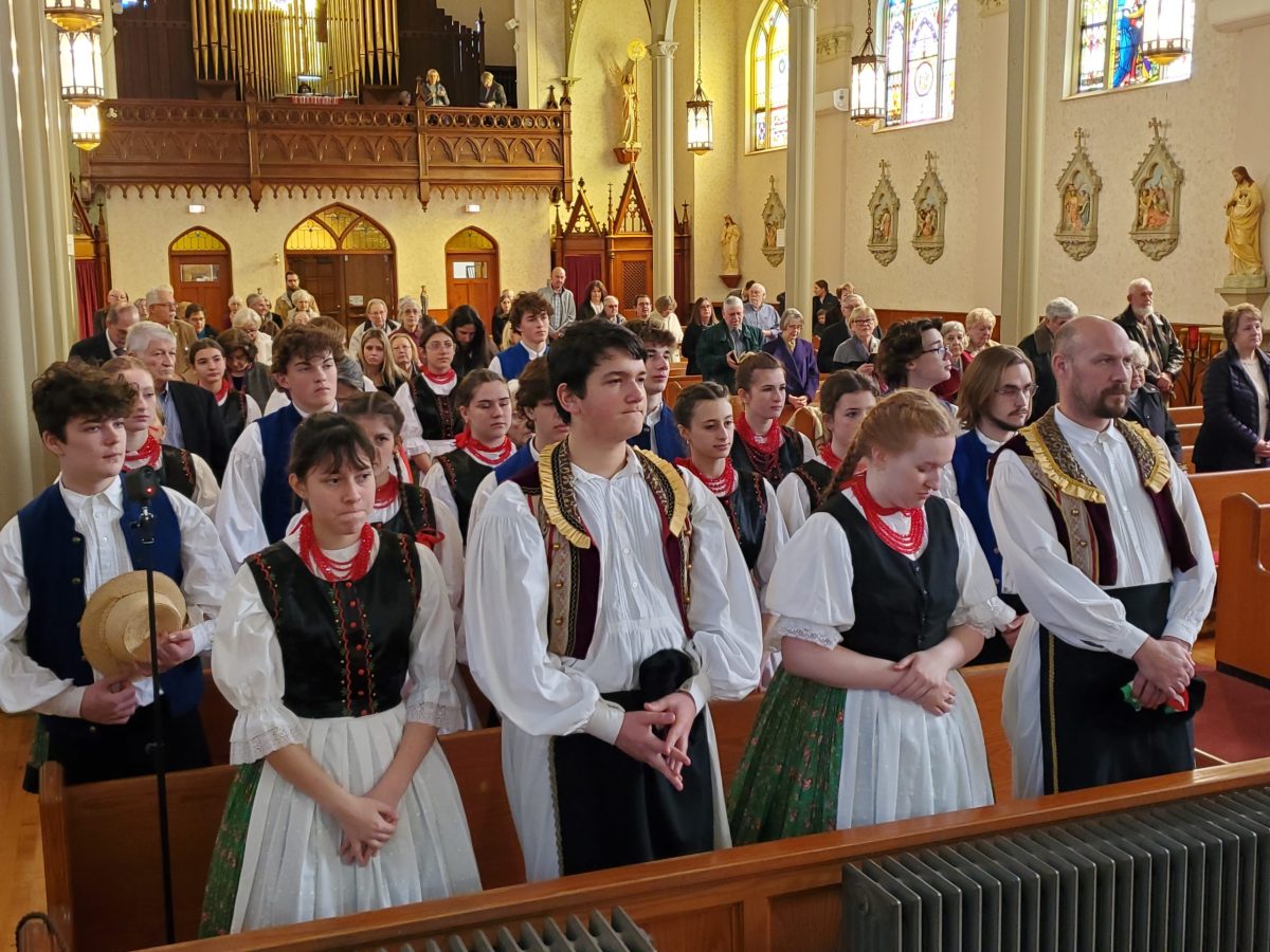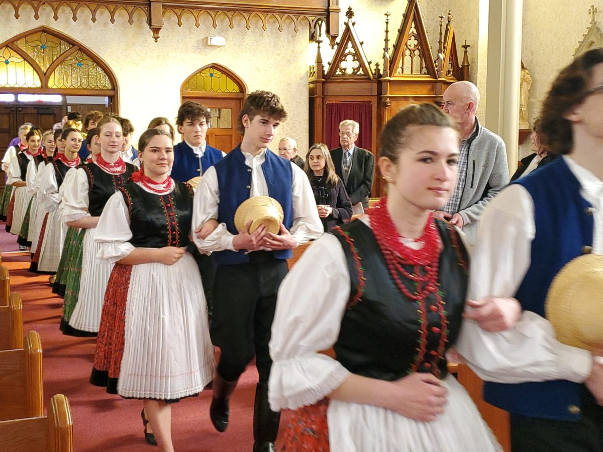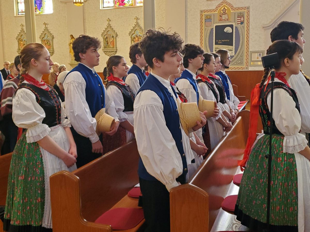 During their weekend retreat, 21 members of the Cleveland Hungarian Scout Folk Ensemble, to everyone’s delight, attended the Mass at St. Emeric Church in Hungarian folk costumes on Sunday, Mar. 5, 2023.