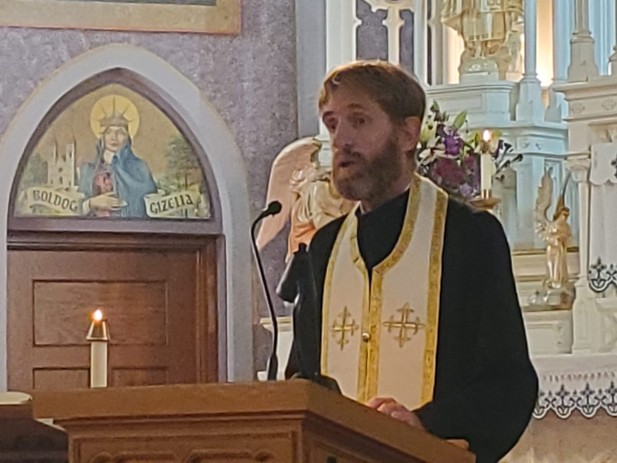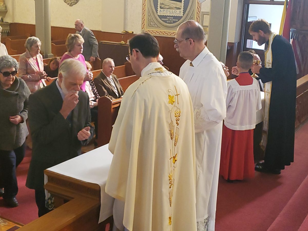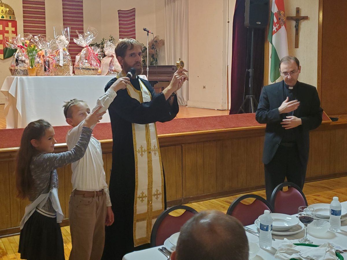 Sunday, Nov. 6, 2022, we celebrated the feast day of St. Emeric. A special welcome was given to Fr. Peter Boksay, who was our homilist at the Mass. He is a Byzantine Catholic priest of the Archeparchy (archdiocese) of Hajdúdorog and since February he has been serving in the Eparchy of Parma as the administrator of St. Emilian parish in Brunswick, Ohio. He has visited our parish before several times, but this was the first time he concelebrated and preached in our church. Thank you, Fr. Boksay, for celebrating with us. Following the Mass, there was a celebratory dinner in the church hall.