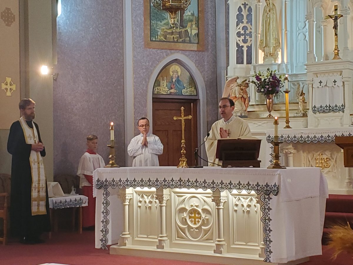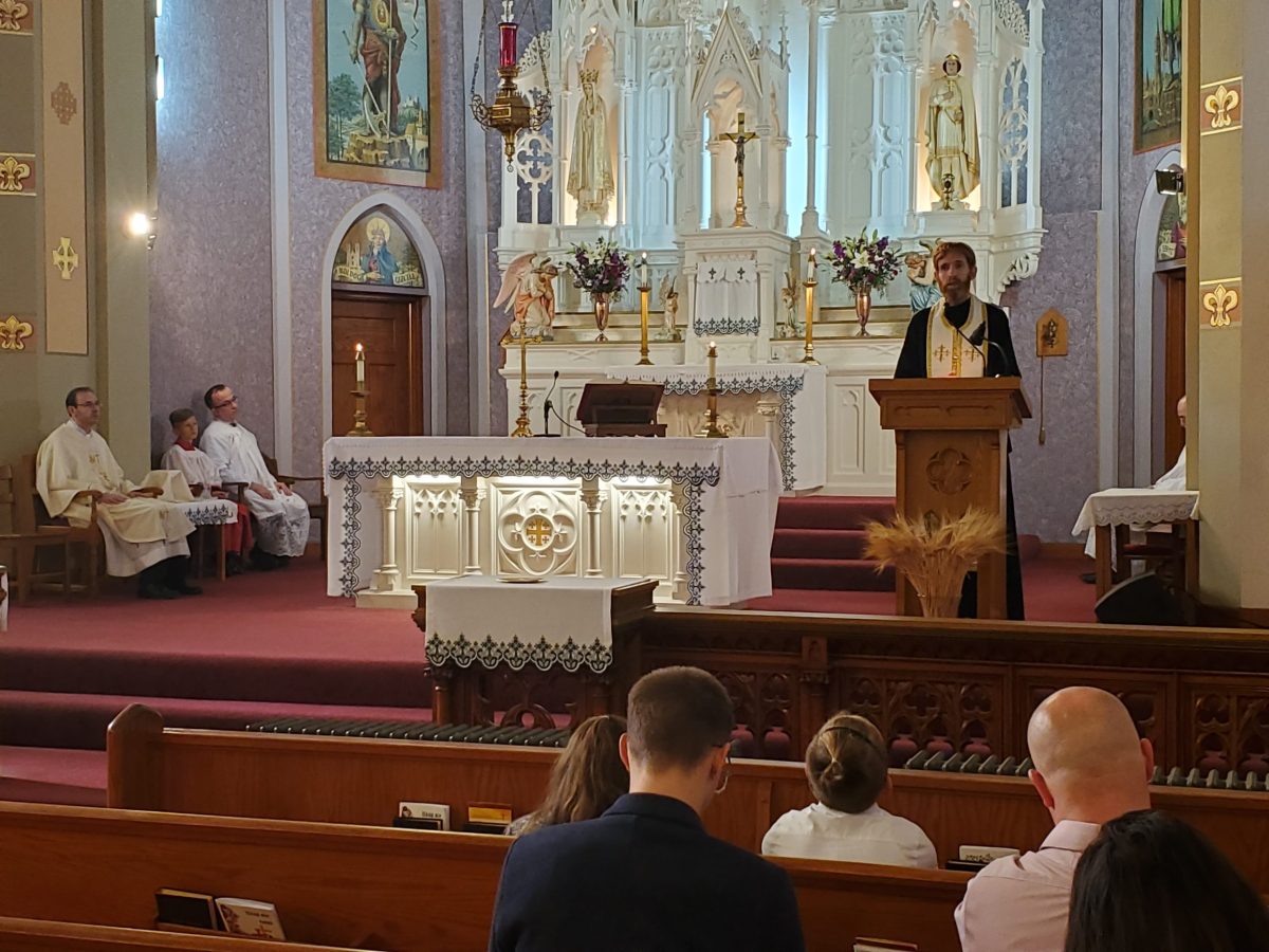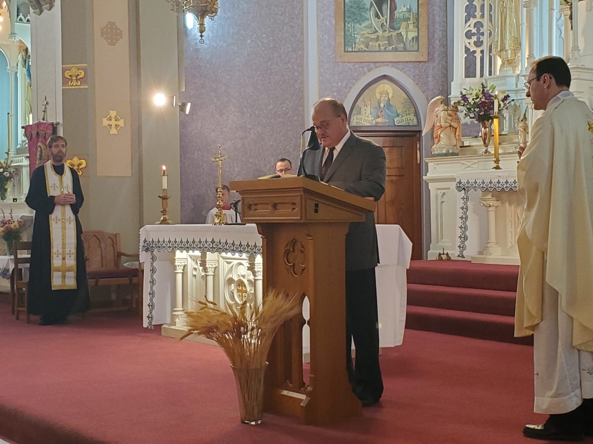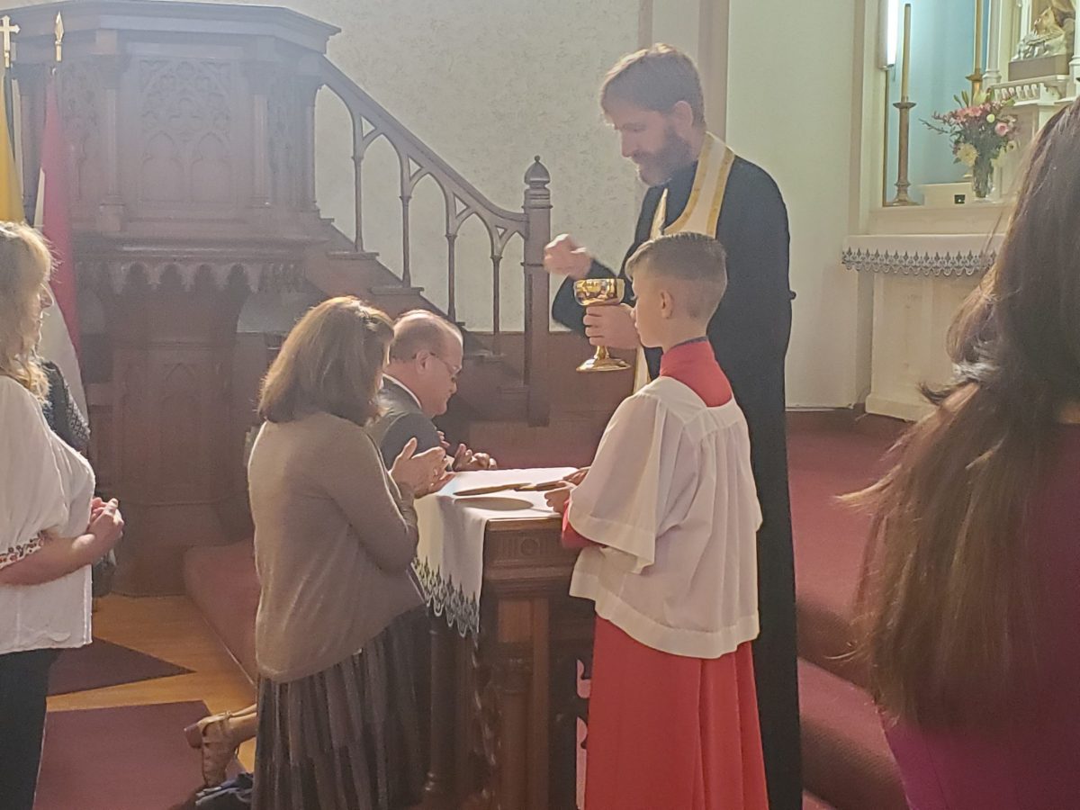 Sunday, Nov. 6, 2022, we celebrated the feast day of St. Emeric. A special welcome was given to Fr. Peter Boksay, who was our homilist at the Mass. He is a Byzantine Catholic priest of the Archeparchy (archdiocese) of Hajdúdorog and since February he has been serving in the Eparchy of Parma as the administrator of St. Emilian parish in Brunswick, Ohio. He has visited our parish before several times, but this was the first time he concelebrated and preached in our church. Thank you, Fr. Boksay, for celebrating with us. Following the Mass, there was a celebratory dinner in the church hall.
