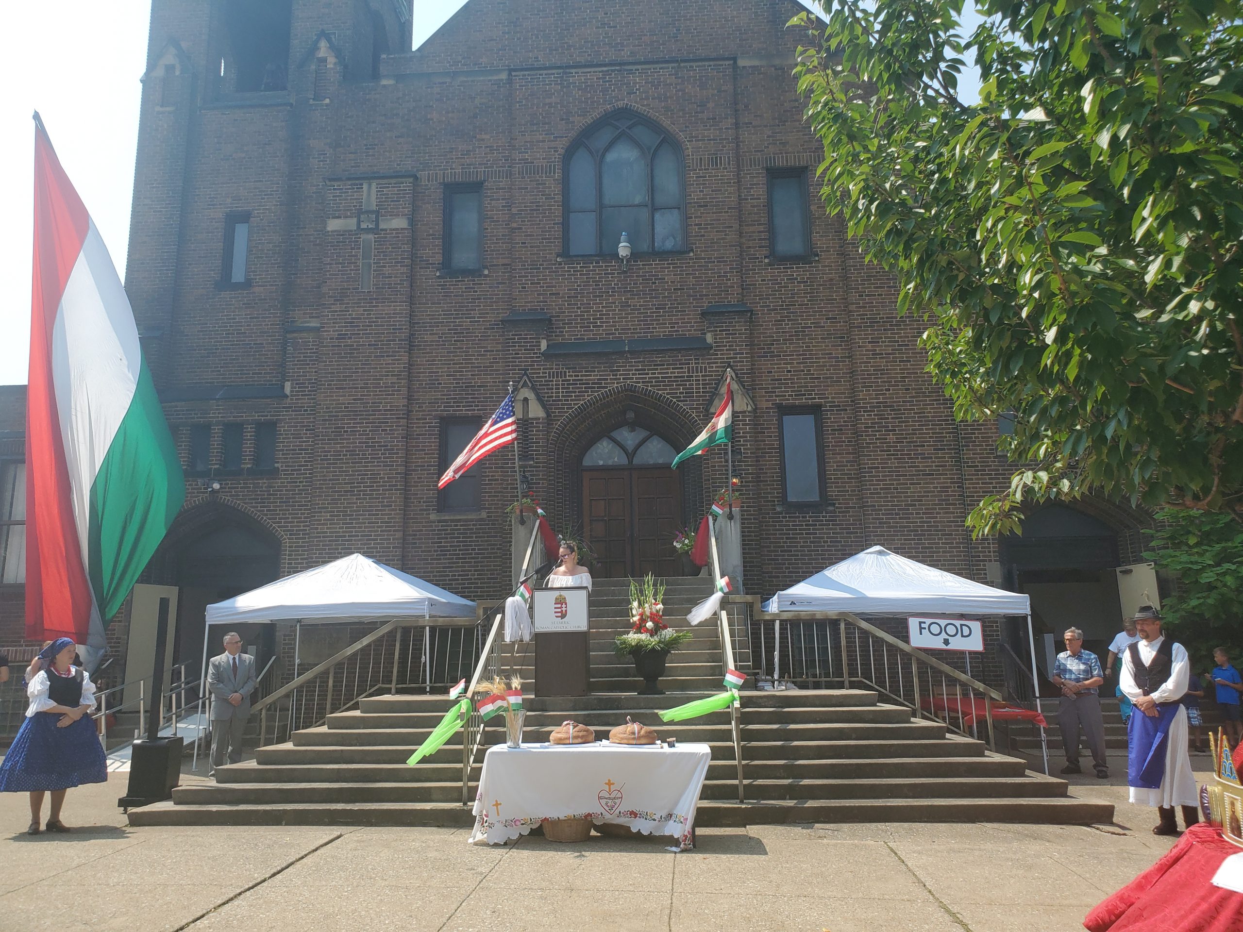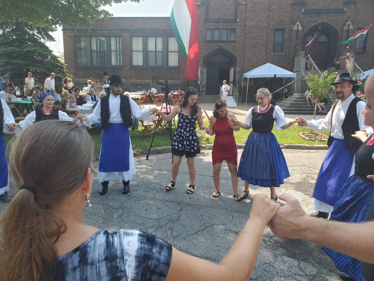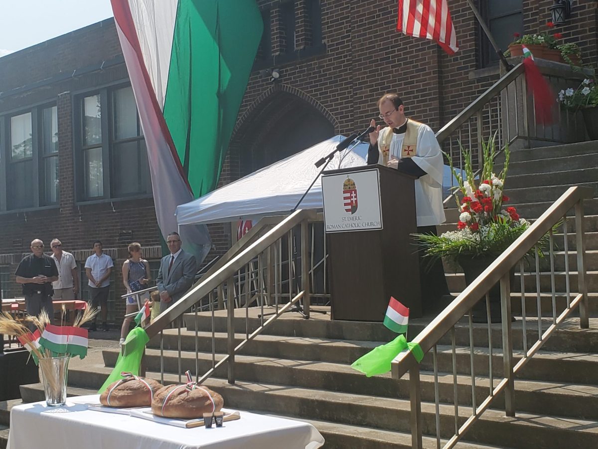A szentmise után a piknik a templom előtti területen és a templom disz termében kezdődött finom magyar kolbászokkal, káposztával, petrezselymes krumplival és házi desszertekkel. Az esemény ünnepi szónoka dr. Virányi-Gyermán Erika, Magyarország Chicagói Főkonzulátusának első beosztott, ideiglenes ügyvivő asszony helyettese volt. Beszédét követte a Szt. Imre templom adminisztrátora Bóna Richárd atya aki megáldta és felvágta az óriási újkenyereket. A szórakozást Cséh András cimbalom szólista és az Örömtánc néptáncosai biztosította. A gyönyörű időjárás, bár nagyon meleg volt, segített biztosítani, hogy mindenki jól érezhesse magát.