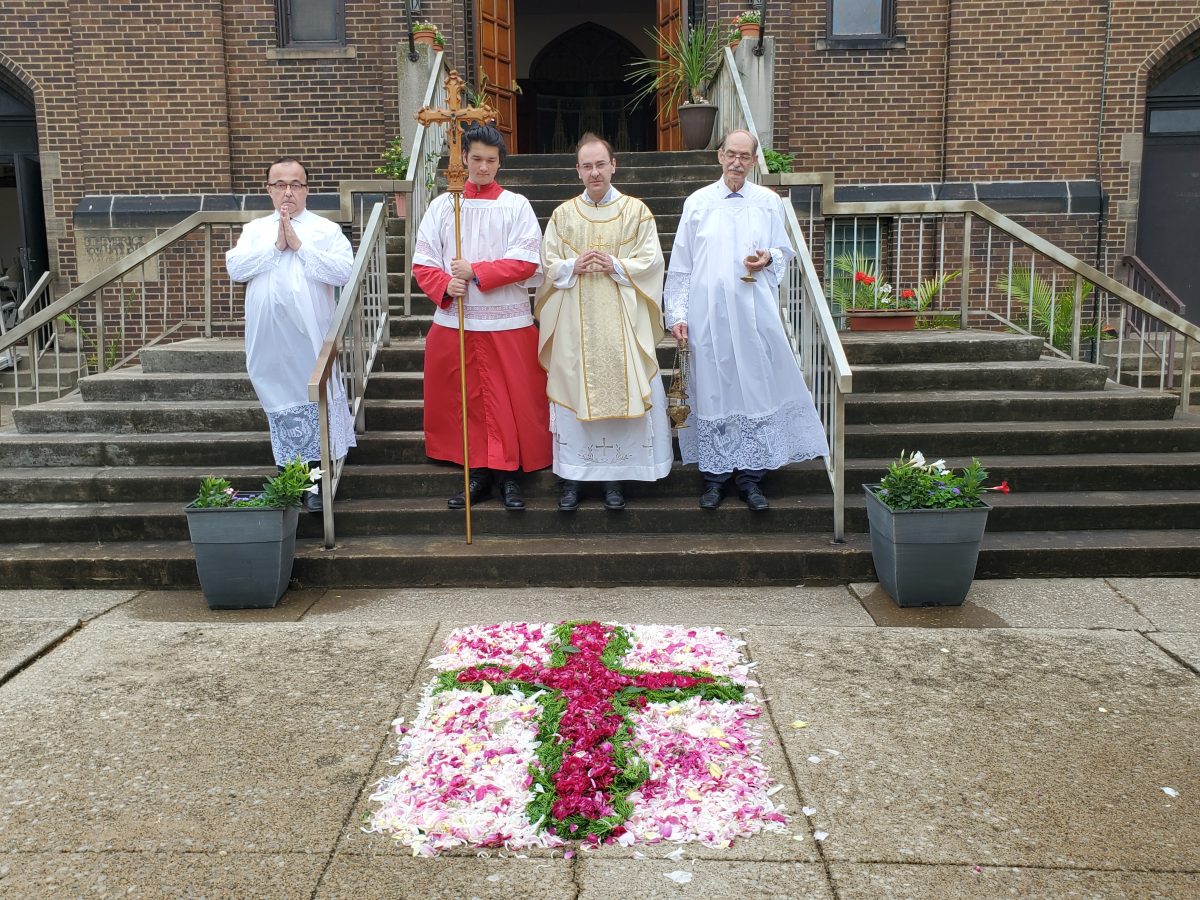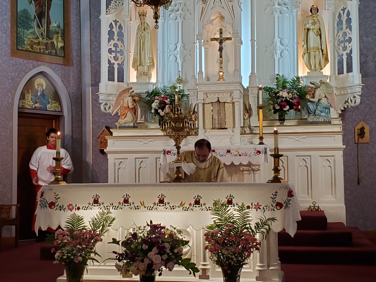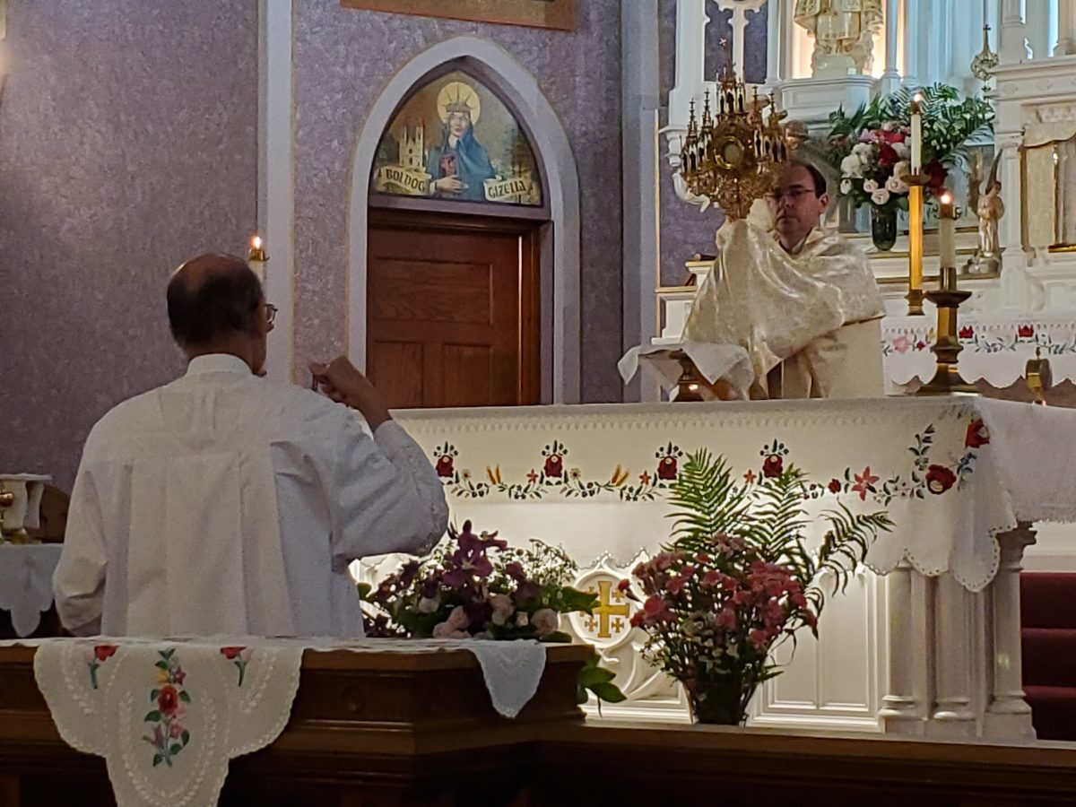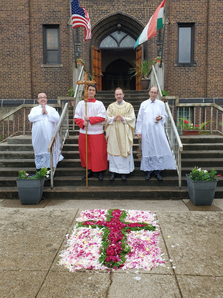 Krisztus szent teste és vére úrnapján, 2024. június 2-án, sajnos a szeles és esős időjárás miatt, a kinti körmenet elmaradt. A mise után, bent a templomban tartottunk egy eucharisztikus ájtatosságot. Ez így is nagyon szép és inspiráló volt.