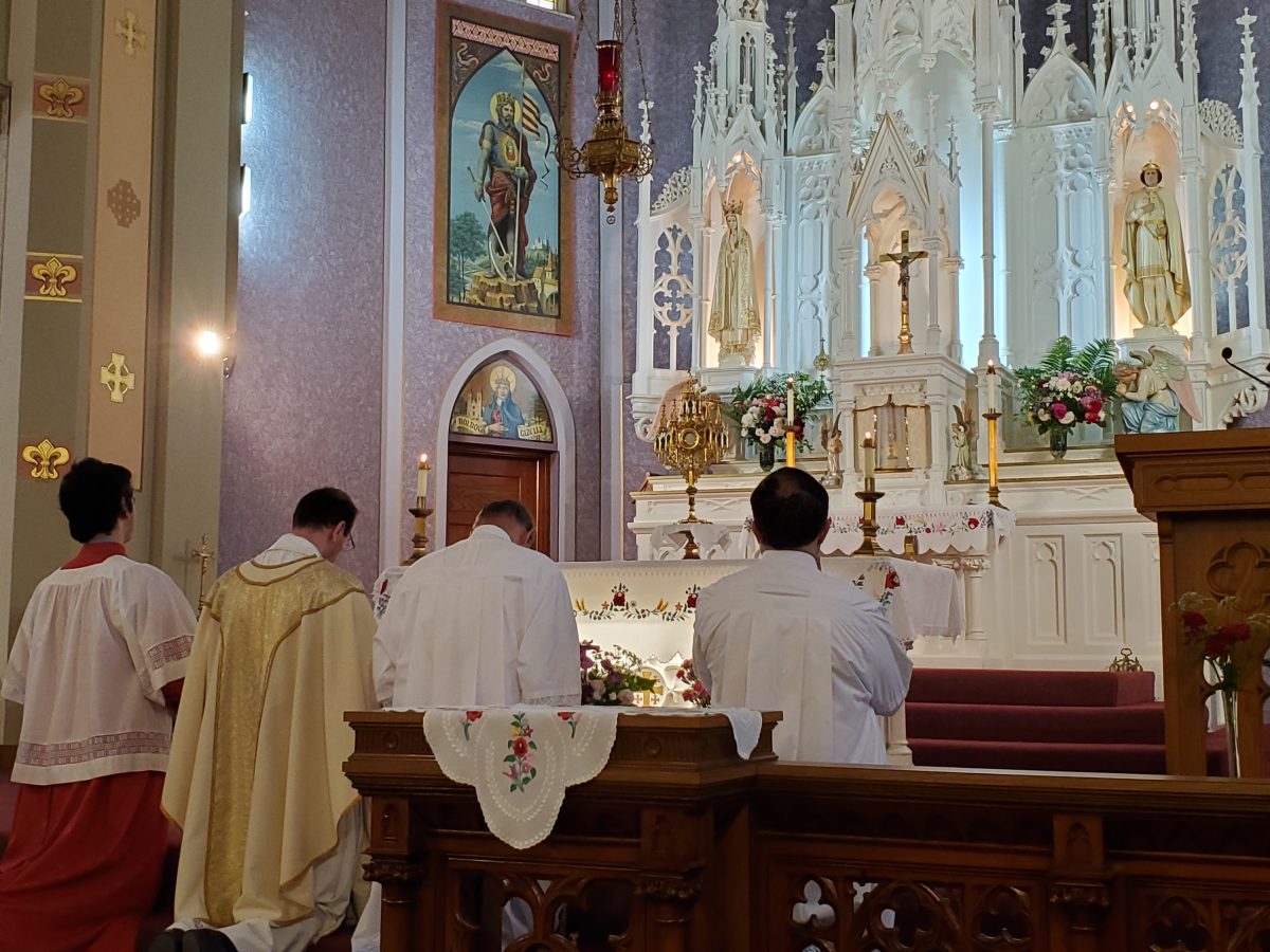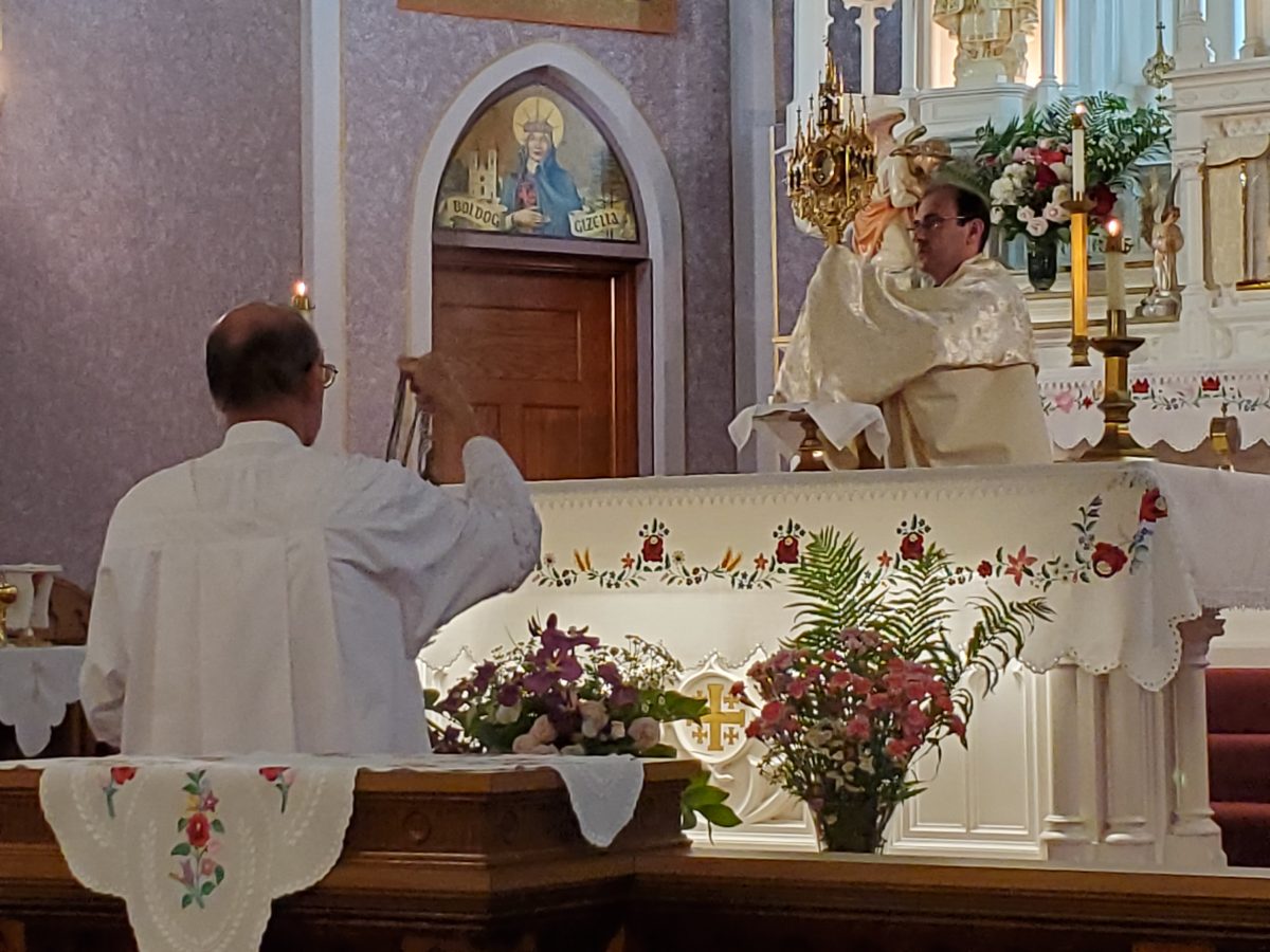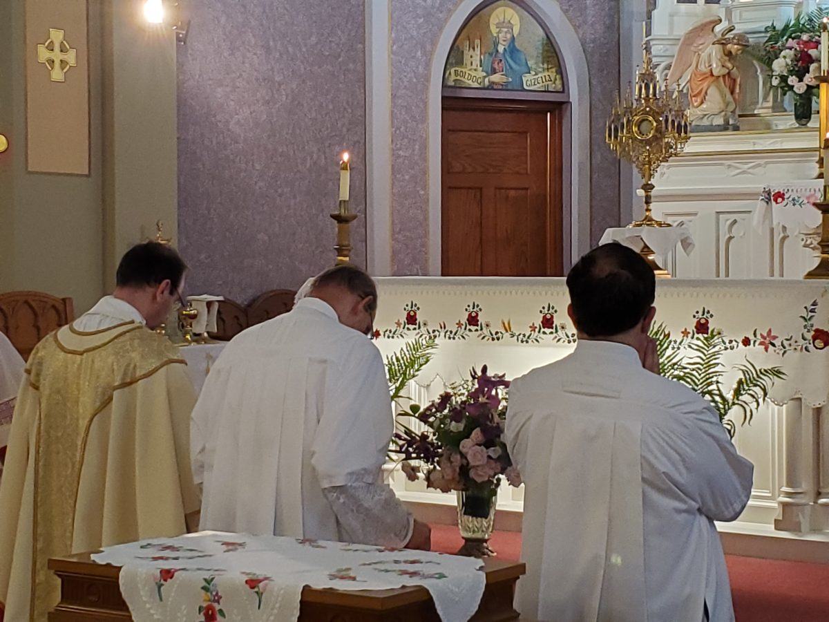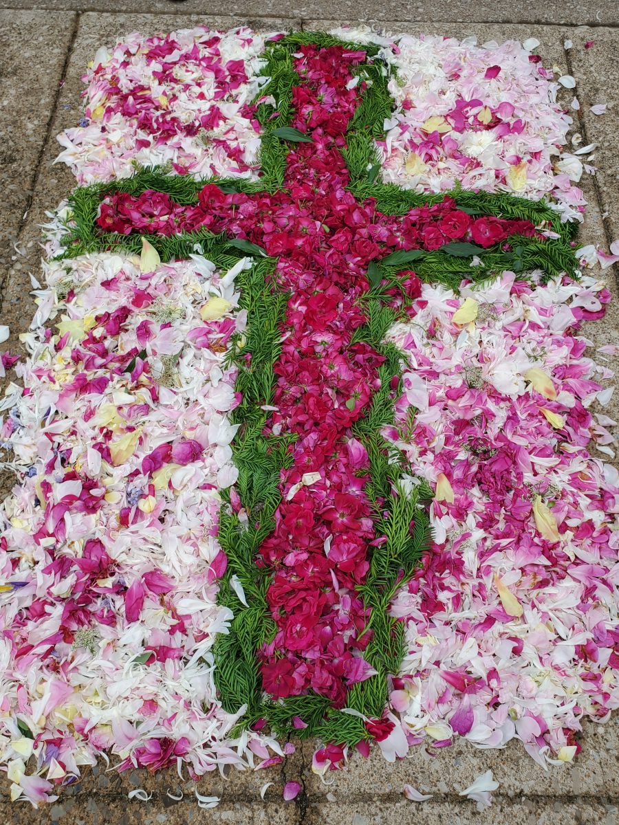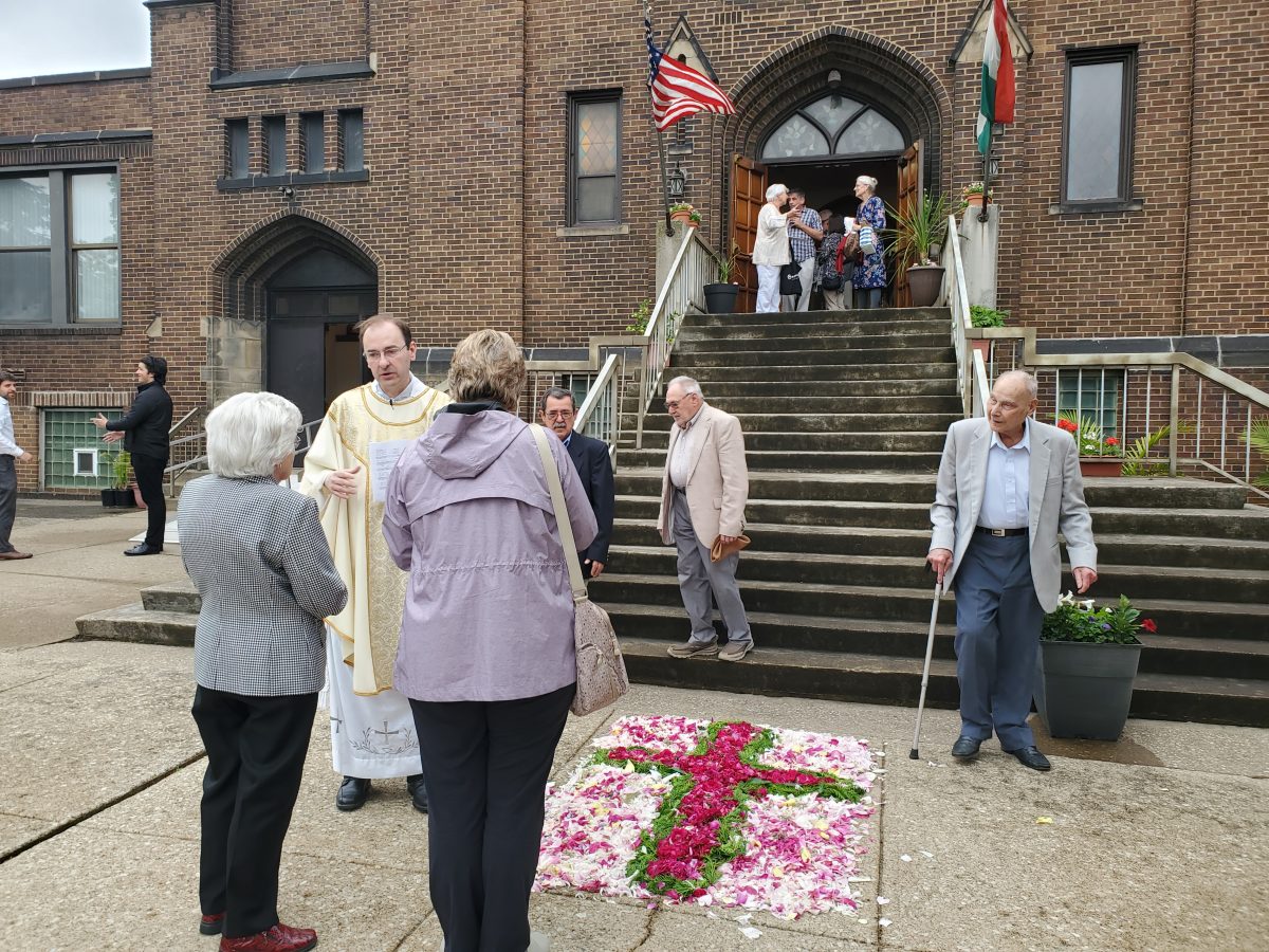 Krisztus szent teste és vére úrnapján, 2024. június 2-án, sajnos a szeles és esős időjárás miatt, a kinti körmenet elmaradt. A mise után, bent a templomban tartottunk egy eucharisztikus ájtatosságot. Ez így is nagyon szép és inspiráló volt.