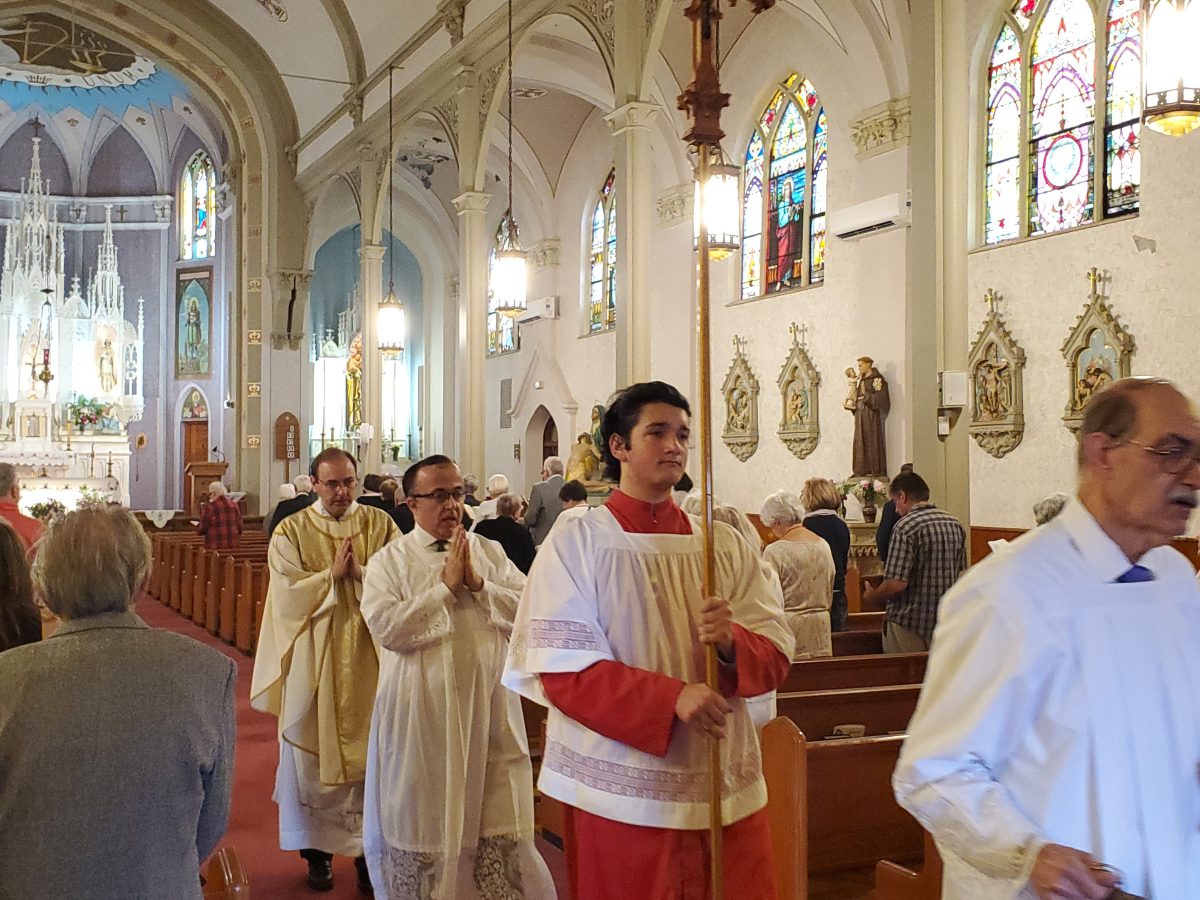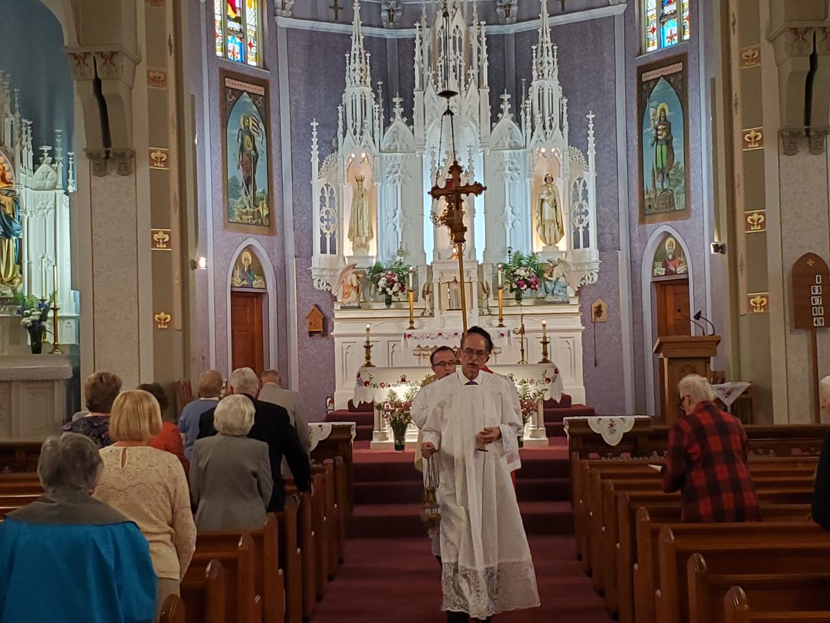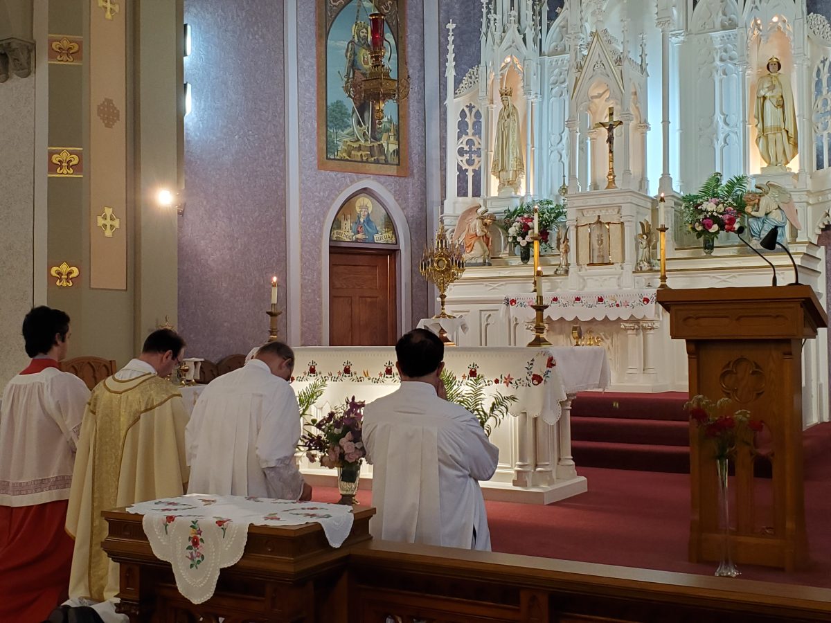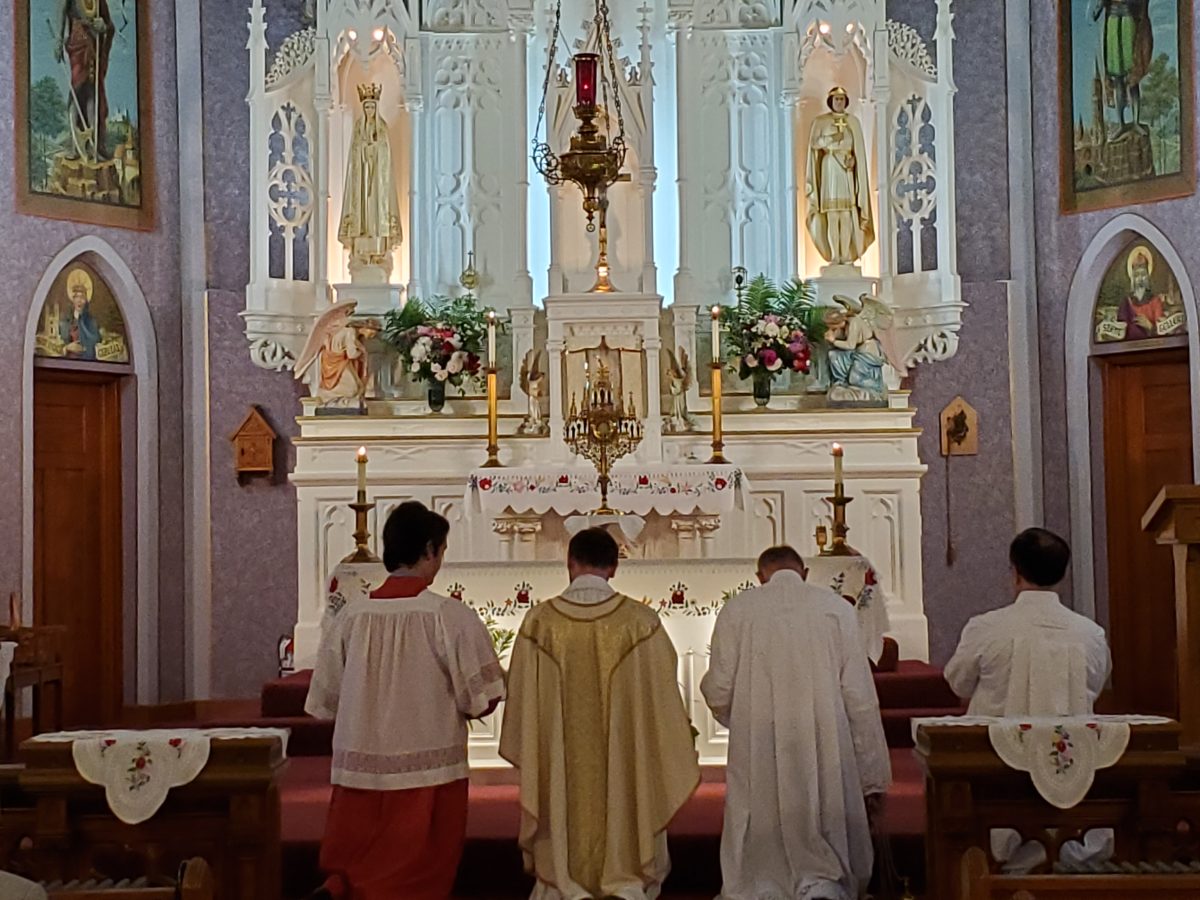 Krisztus szent teste és vére úrnapján, 2024. június 2-án, sajnos a szeles és esős időjárás miatt, a kinti körmenet elmaradt. A mise után, bent a templomban tartottunk egy eucharisztikus ájtatosságot. Ez így is nagyon szép és inspiráló volt.