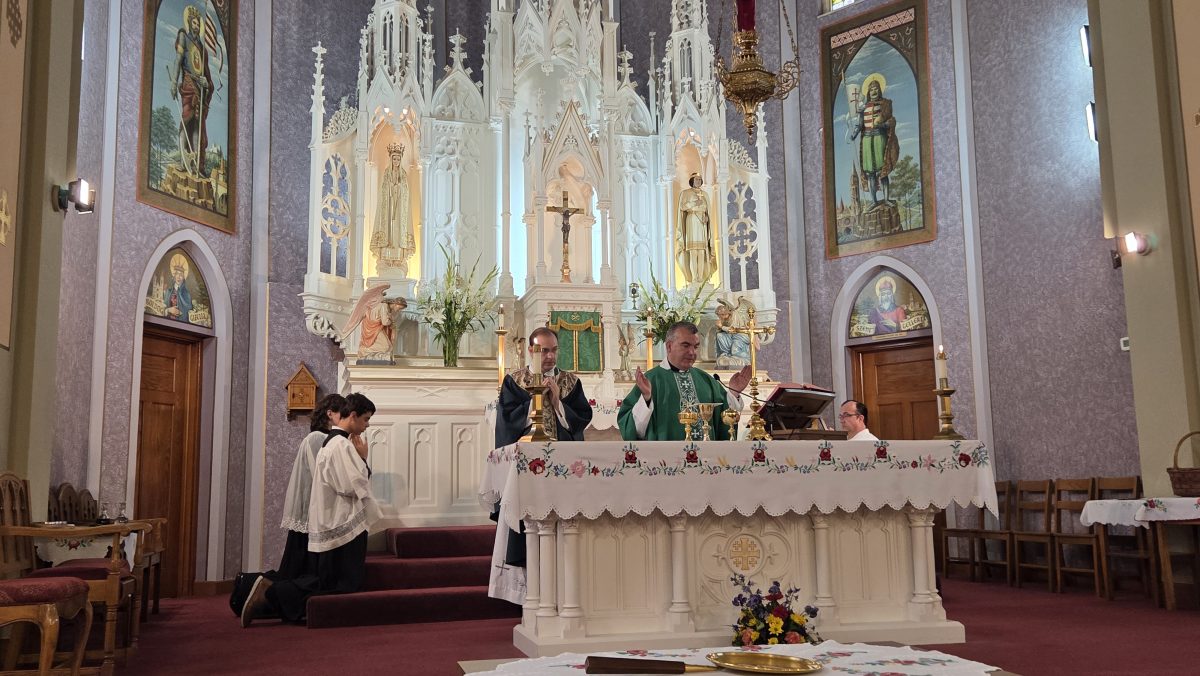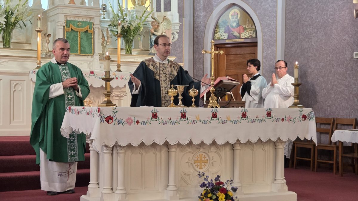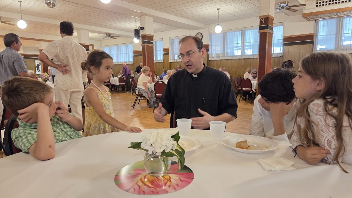 Szeretettel üdvözöltük közénk Mezei András atyát, a keszthelyi Kis Szent Teréz Karmelita Bazilika plébánosát, a 11 órai szentmise prédikátorát, vasárnap 2025. július 6-án. Sokan jól ismerik őt, hiszen 2015-2020 között ő vezette a Szent Imre és később a Szent Erzsébet plébániákat Clevelandban.  A szentmise után agapé volt a díszteremben. Jó volt mindenkinek találkozni és egy kicsit elbeszélgetni András atyával. Isten hozta!