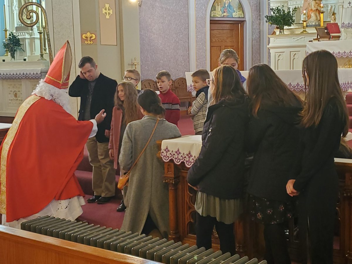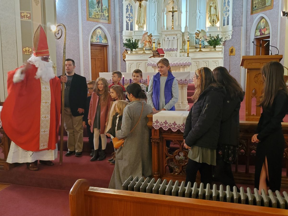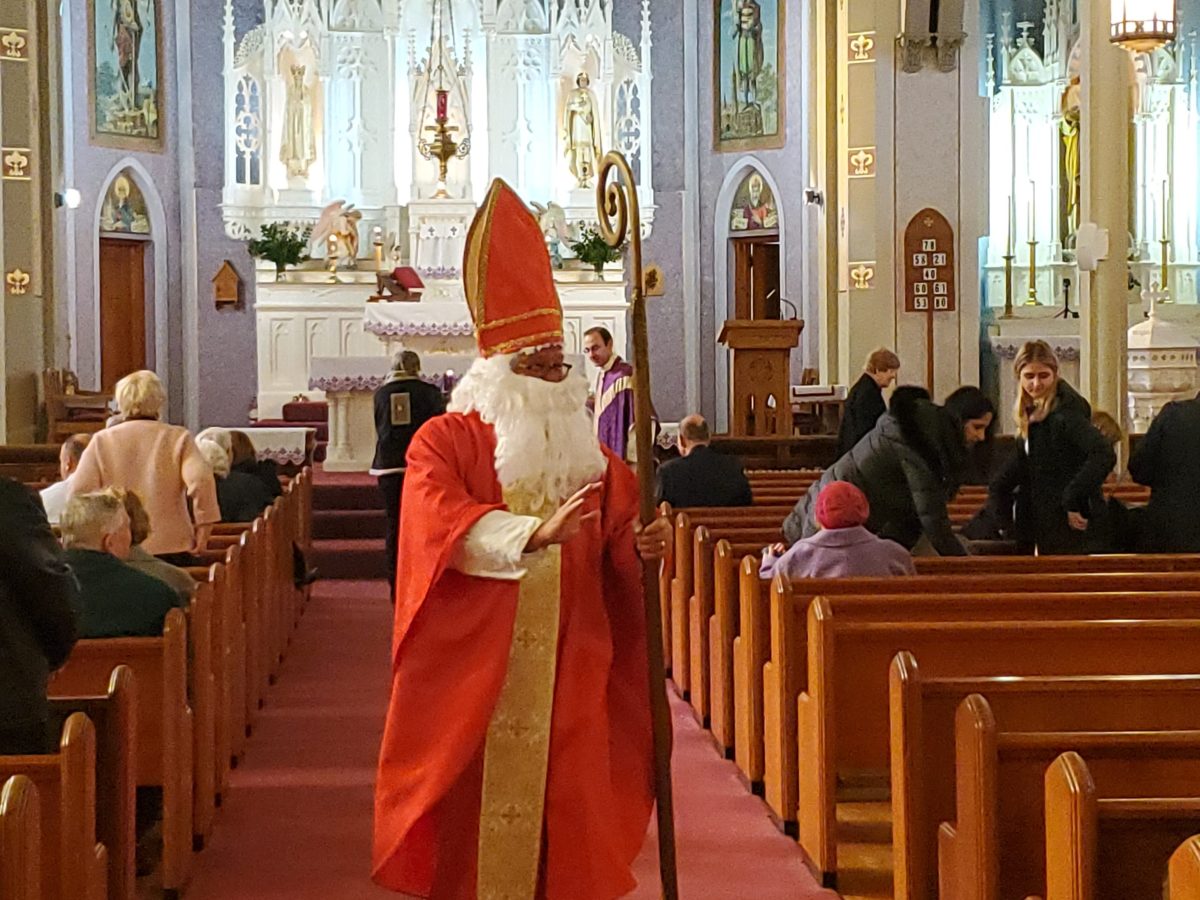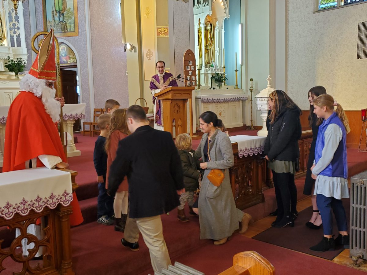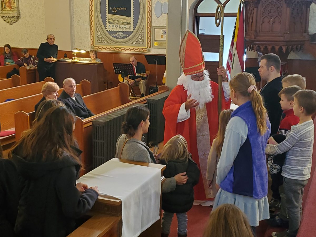 A 2022. december 4-i vasárnapi szentmisét Szent Miklós ünnepe követte, aki történetesen a környéken tartózkodott és meglátogatta a gyerekeket.  Ezt követően mindenkit szívesen láttunk egy agapé-ra a Szent Imre teremben egy kis közösségért, ételért és frissítőkért, ahol Bóna atya születésnapját is ünnepeltük.  Jó időt töltött ott mindenki!