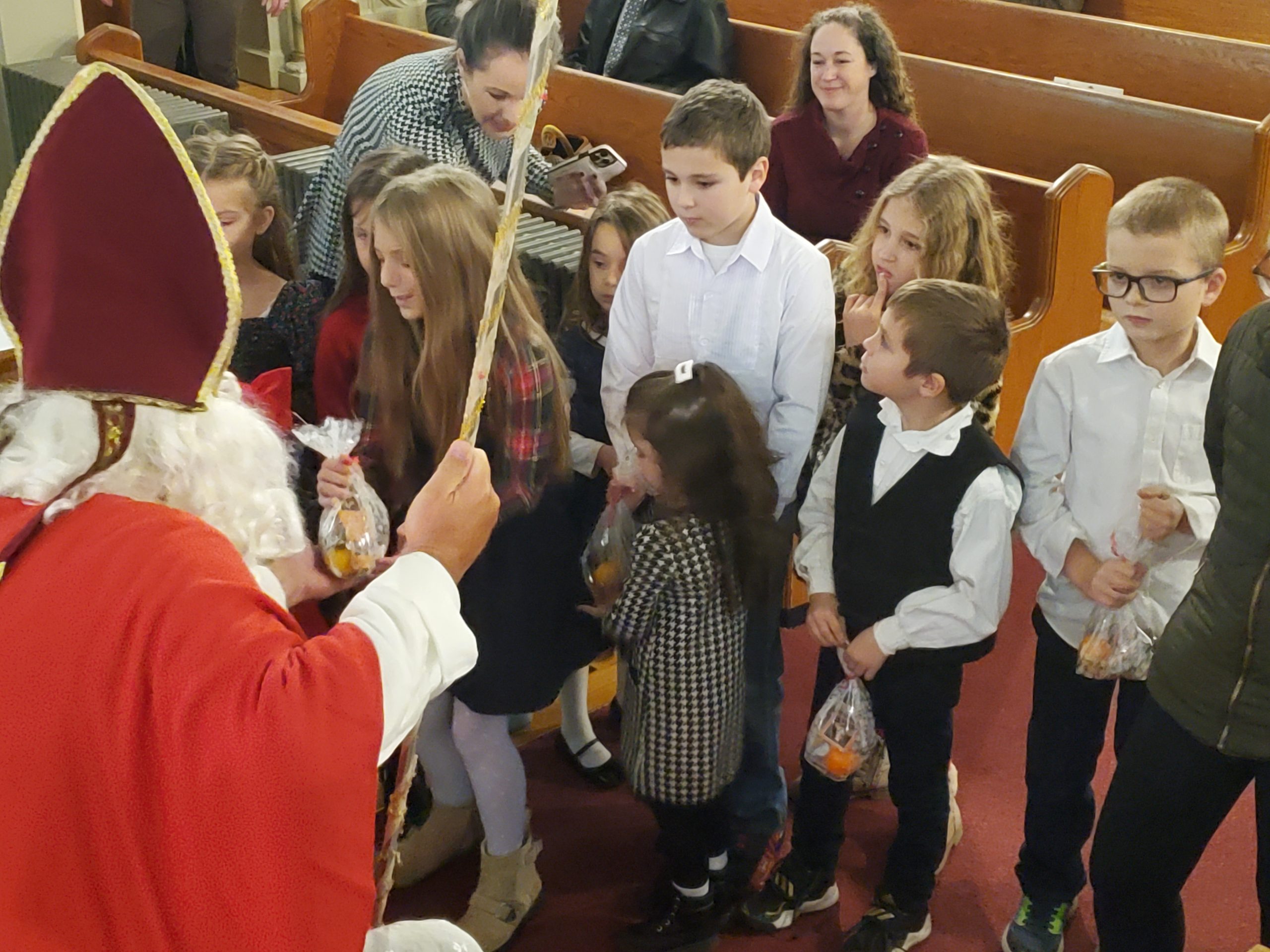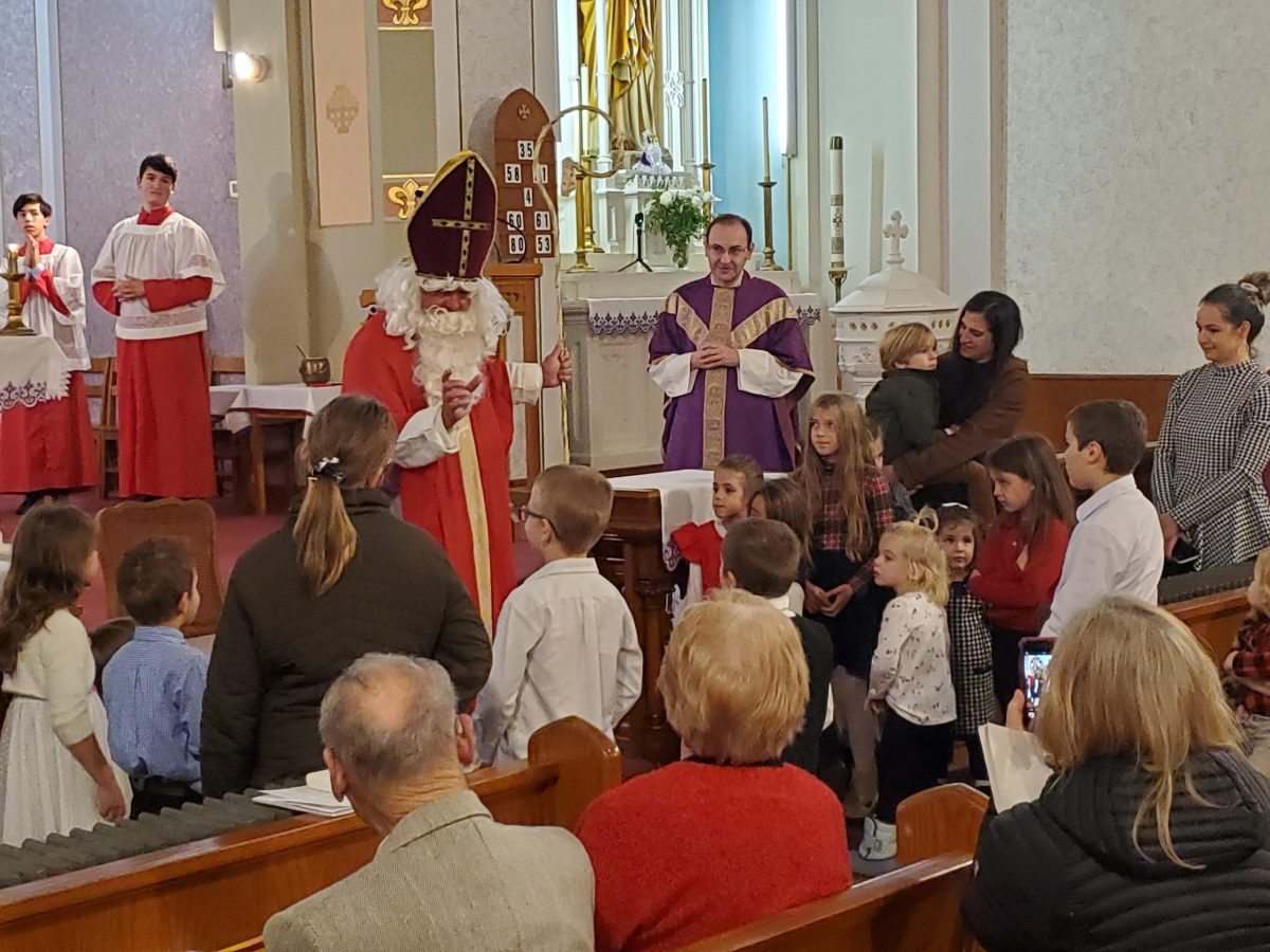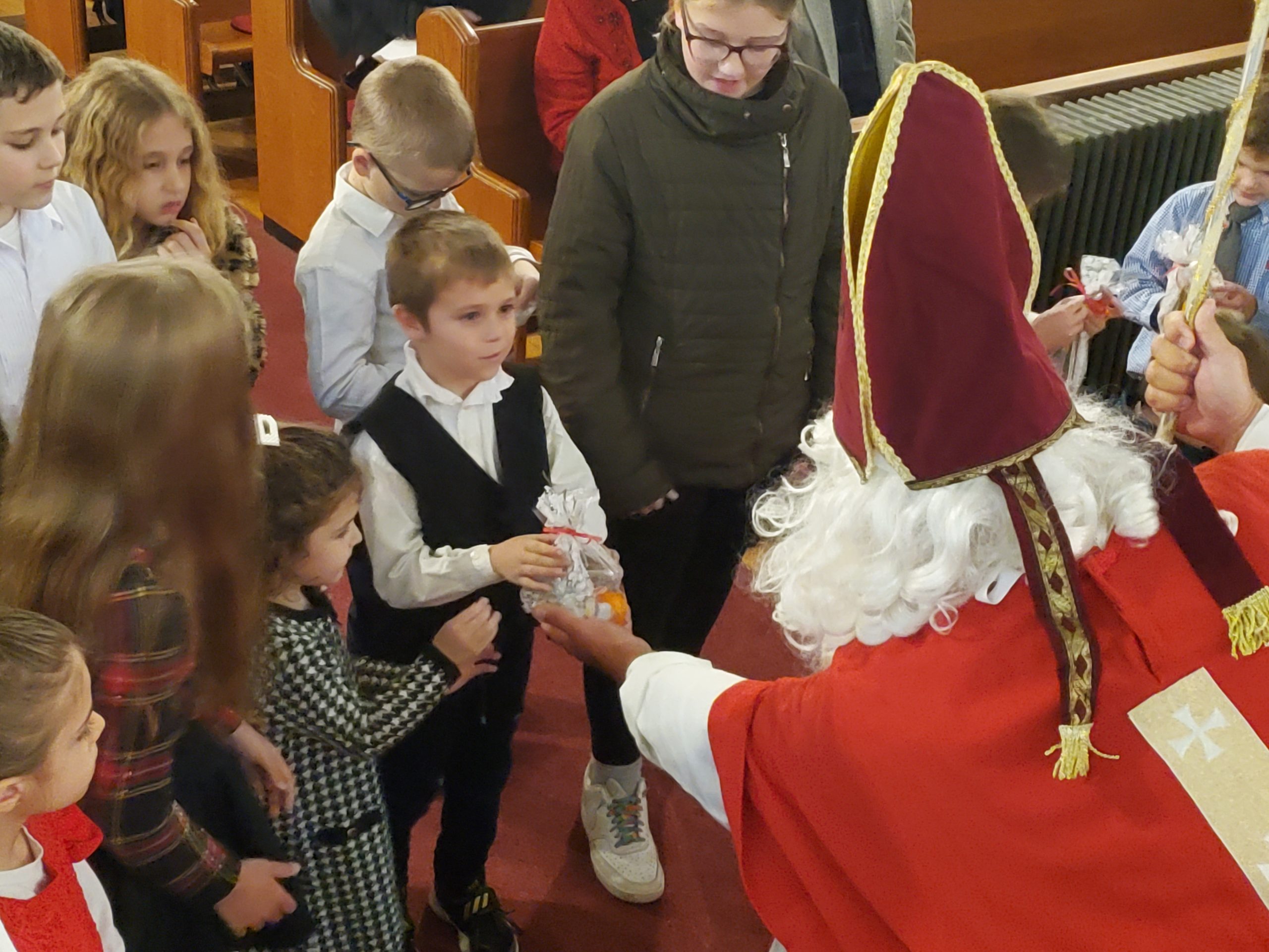 SZENT MIKLÓS, MIKULÁS BÁCSI, MEGLÁTOGATTA A GYEREKEKET A MISE UTÁN – 2023. DECEMBER 3.