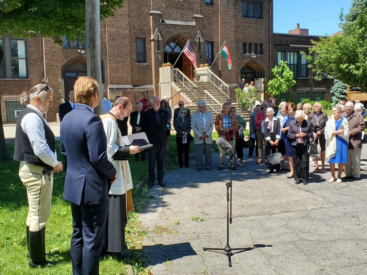 Magyarország chicagói Főkonzulátusának főkonzulja Kovács Tamás és összekötő diplomata dr. Páva Zsolt jelen voltak a clevelandi Szt. Imre templomnál ahol vasárnap, 2021. május 30. részt vettek a nemzeti összetartozás emlékfa tábla avatásán.  A fát tavaly ültették a trianoni békediktátum 100. évfordulóján, a Nemzeti Összetartozás Napján, június 4.én.  A tábla leleplezésén segítettek Csibi Lóránd a Clevelandi Magyarokért Alapítvány elnöke és Bóna Richárd atya a Szt. Imre egyházközség adminisztrátora.