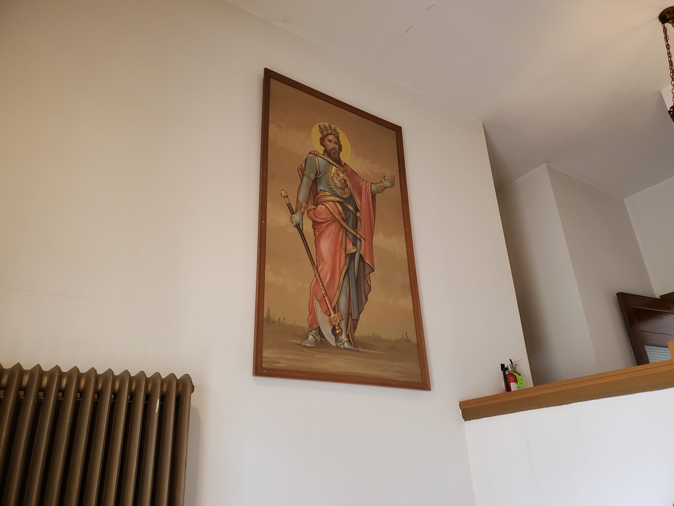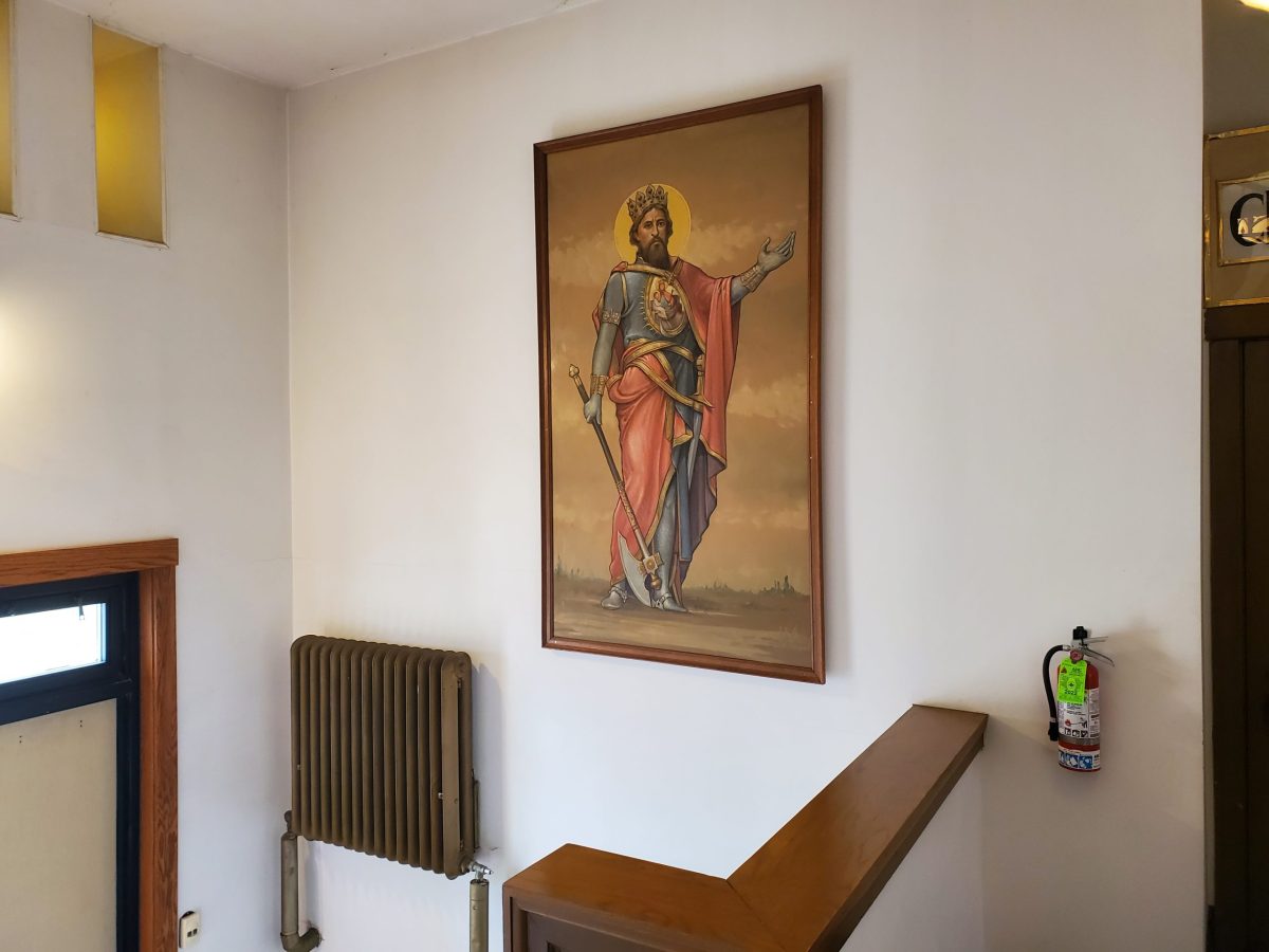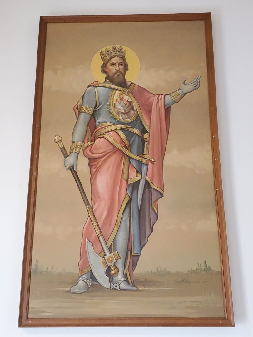 A Szt. László festmény, ami egyszer a Szt. Imre templom szentélyében volt elhelyezve, új helyett kapott templomunkban.