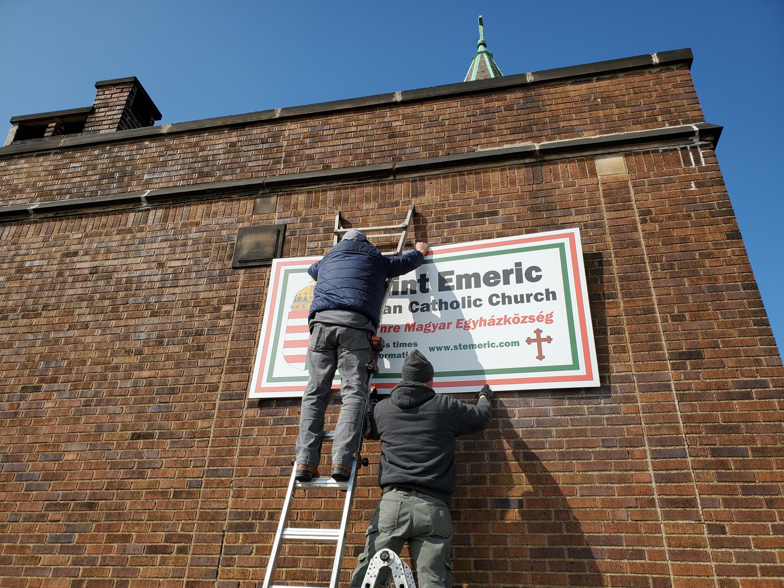 A kinti Szt. Imre templom tábla elkopott és elavult – és lecseréltük – új kiírás hirdeti a templomunk nevét.