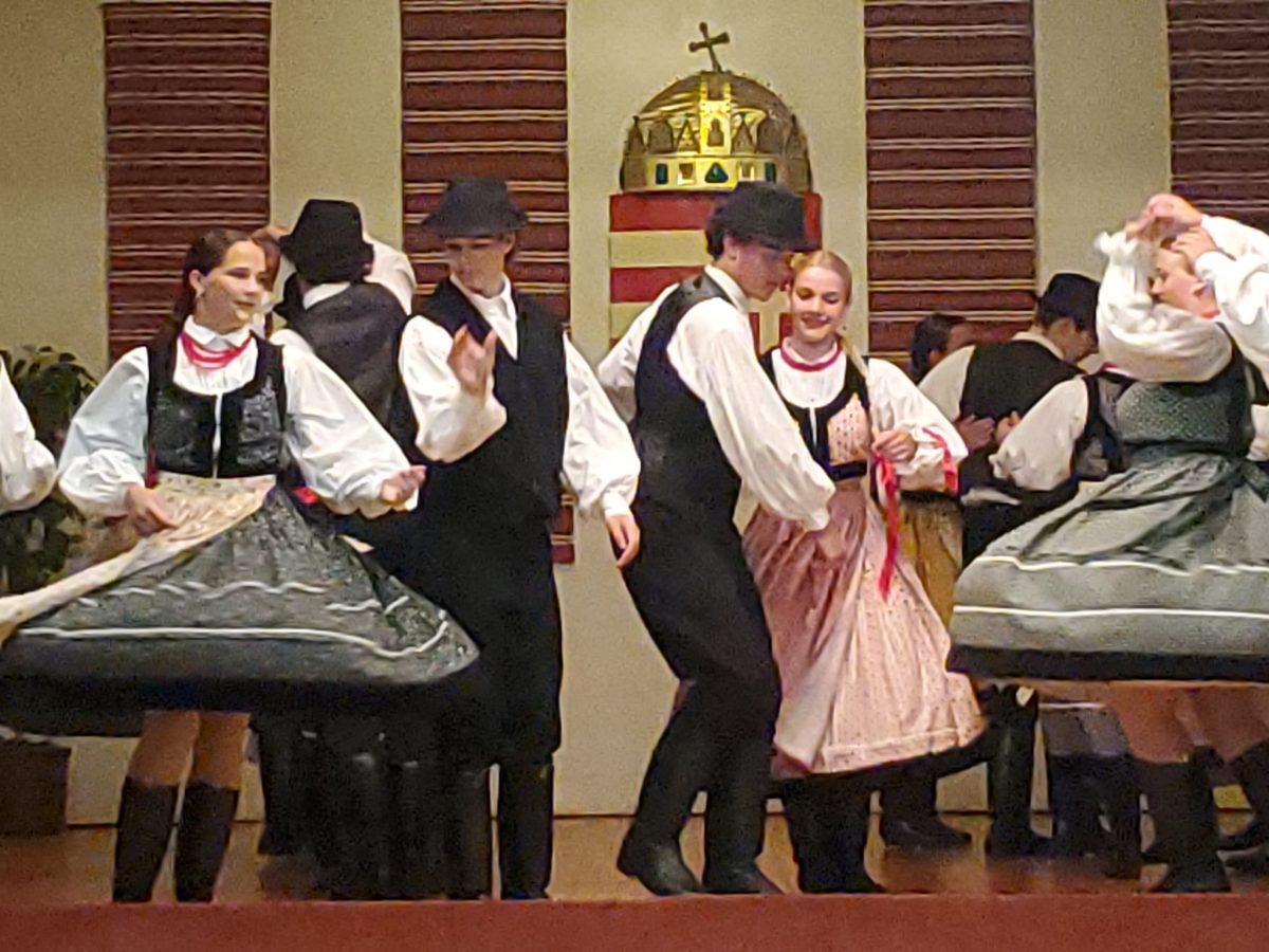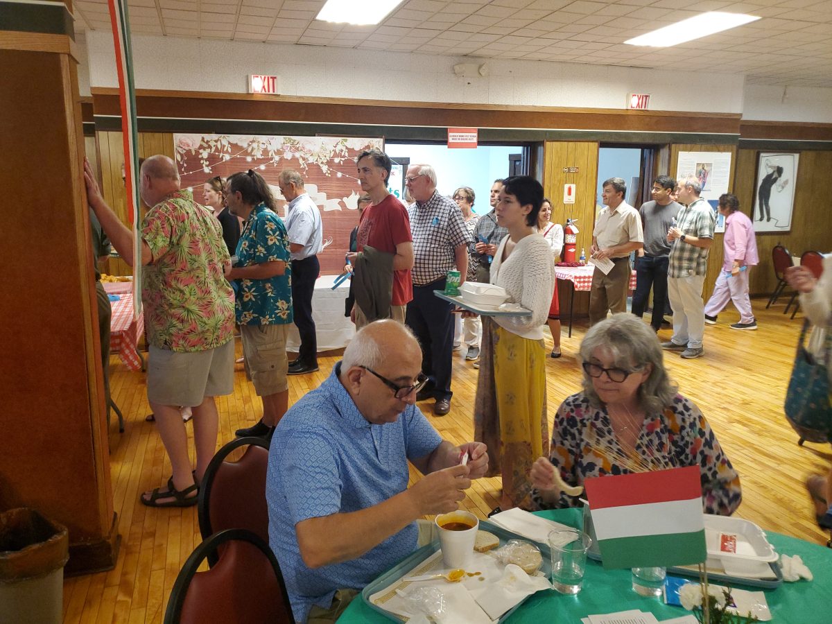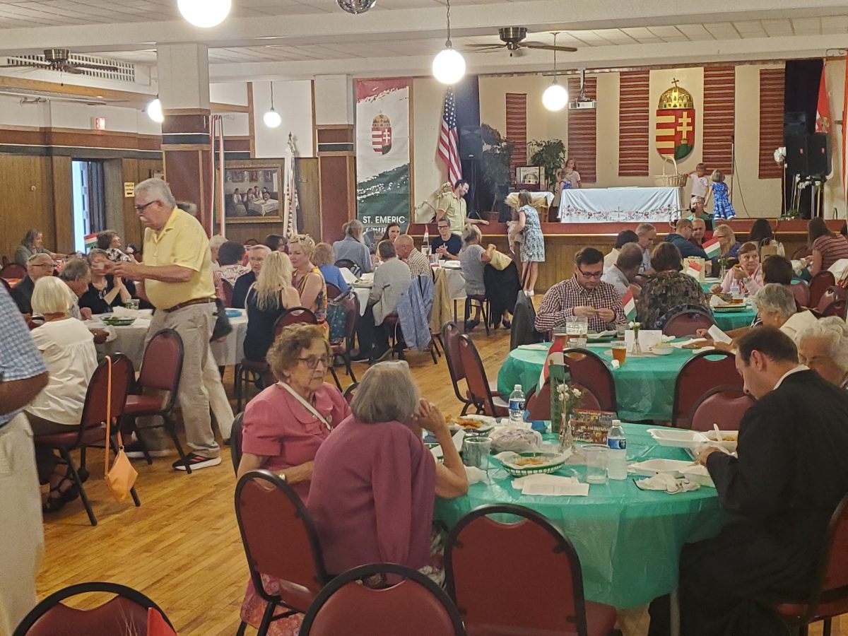 KING SAINT STEPHEN PICNIC was held by Cleveland’s St. Emeric parish on August 18, 2024. The day began with Mass in Hungarian. This was followed by picnic food available in the Church Hall. There was Hungarian style sausage, stuffed cabbage, venison goulash, along with tomato, pepper & onion stew (lecsó), lángos (elephant ear), cabbage & noodles, assorted pastries and for the children hotdogs, chips and ice-cream treats too. Once the rain stopped and the weather cleared, guests could enjoy their food at picnic tables on the parish grounds. The traditional blessing of the new bread, music inside and outdoors, a raffle and a dance presentation by the Hungarian Scout Folk Ensemble rounded out the afternoon festivities. A good time was had by all!