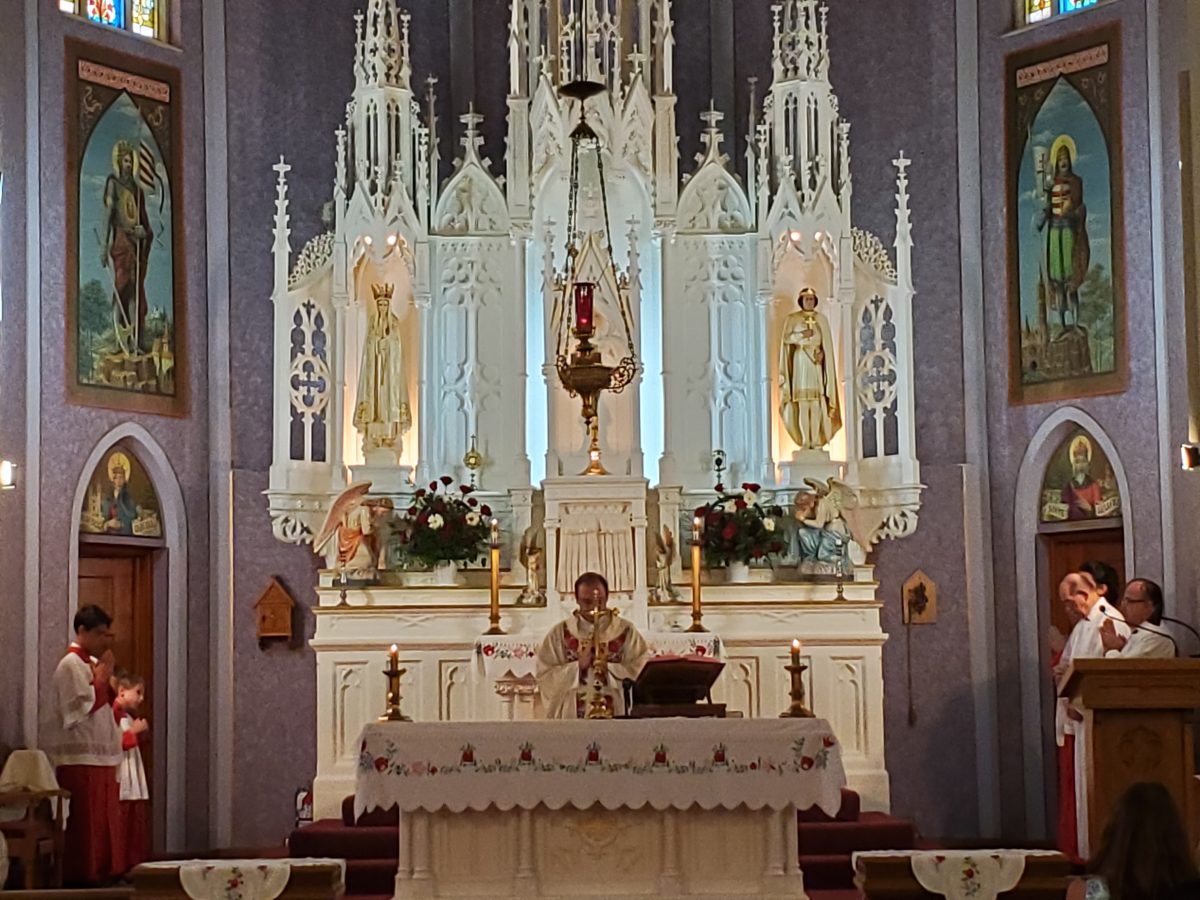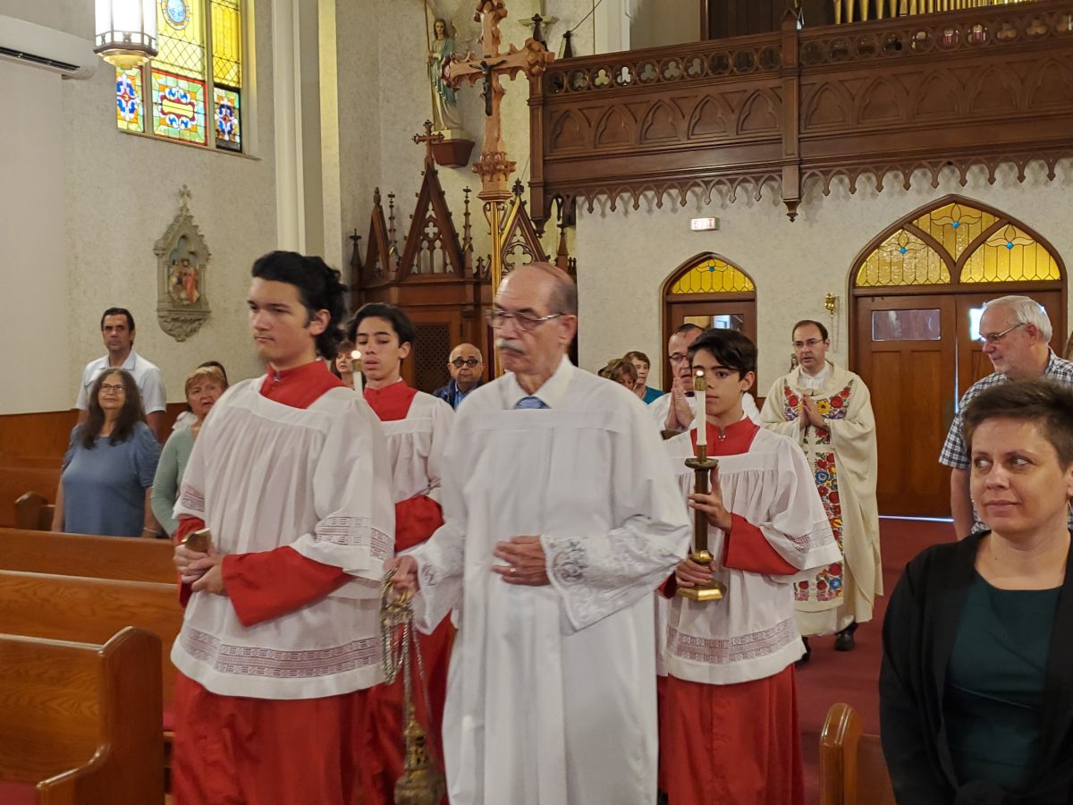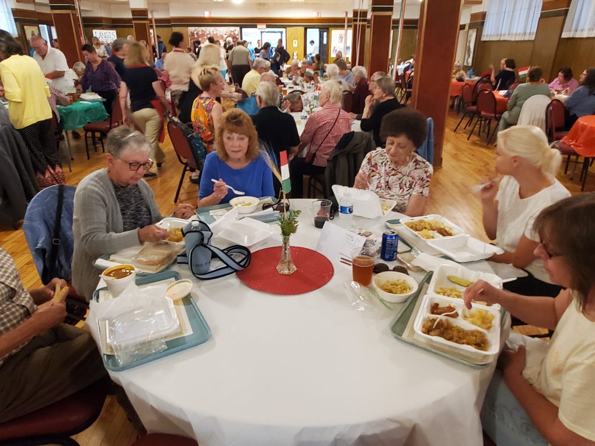 KING SAINT STEPHEN PICNIC was held by Cleveland’s St. Emeric parish on August 18, 2024. The day began with Mass in Hungarian. This was followed by picnic food available in the Church Hall. There was Hungarian style sausage, stuffed cabbage, venison goulash, along with tomato, pepper & onion stew (lecsó), lángos (elephant ear), cabbage & noodles, assorted pastries and for the children hotdogs, chips and ice-cream treats too. Once the rain stopped and the weather cleared, guests could enjoy their food at picnic tables on the parish grounds. The traditional blessing of the new bread, music inside and outdoors, a raffle and a dance presentation by the Hungarian Scout Folk Ensemble rounded out the afternoon festivities. A good time was had by all!
