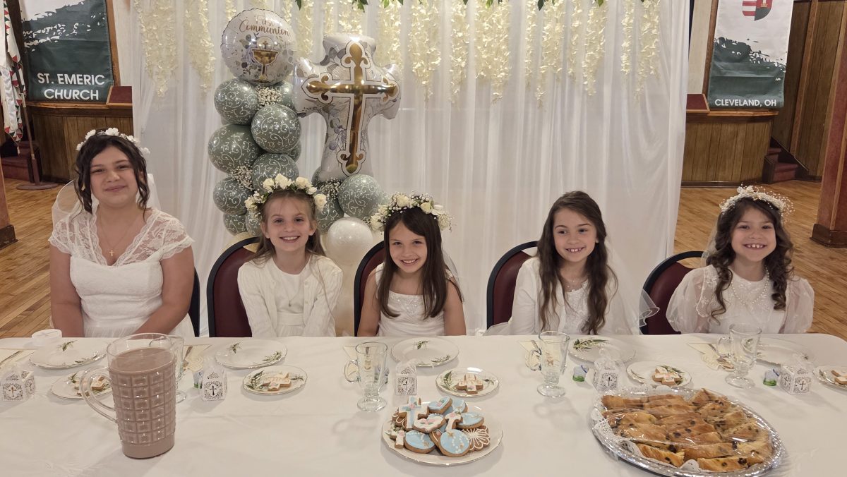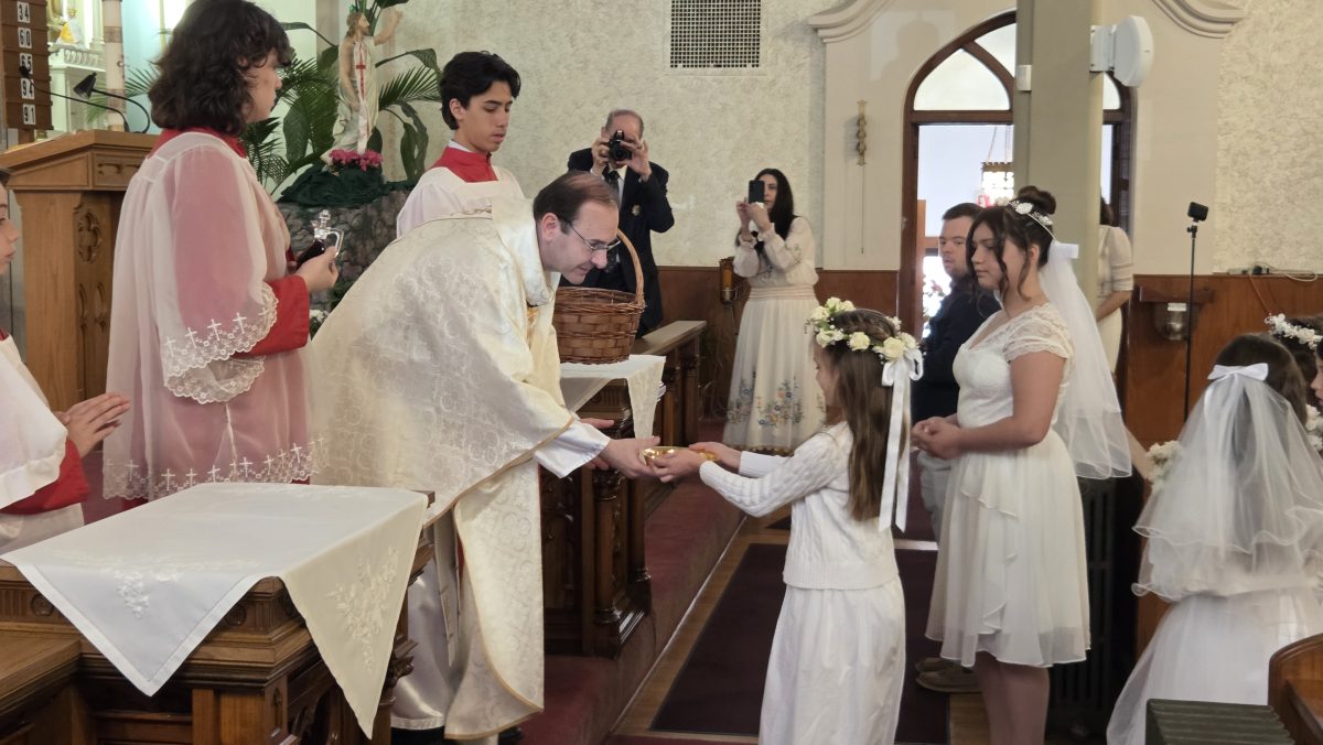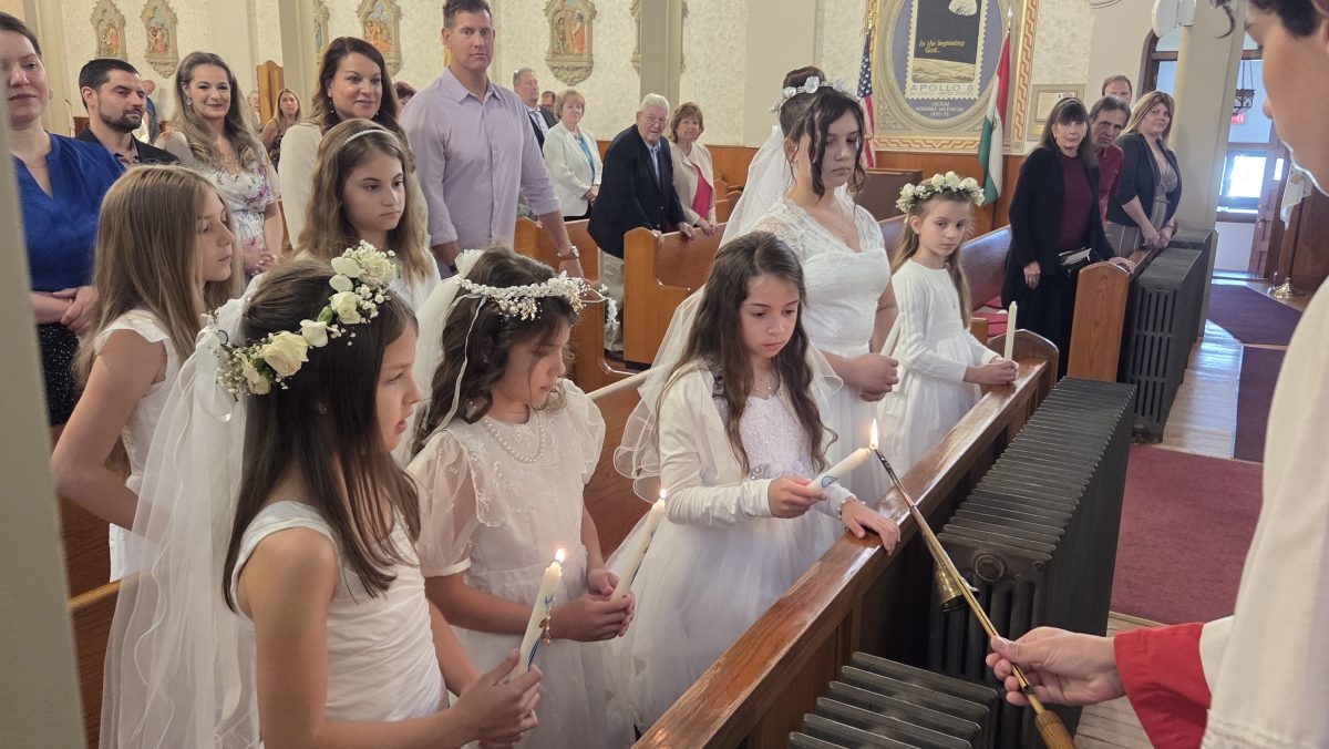 Cecilia Bilek and Seraphina Nagy received First Communion, and Nora Baráth, Gabriella Nagy and Julianna Pasal received their second Holy Communion. We are happy for them and we congratulate them! Also, we pray for them and all First Communicants that they would faithfully follow and remain connected to our Lord Jesus Christ, the Good Shepherd, throughout their lives.