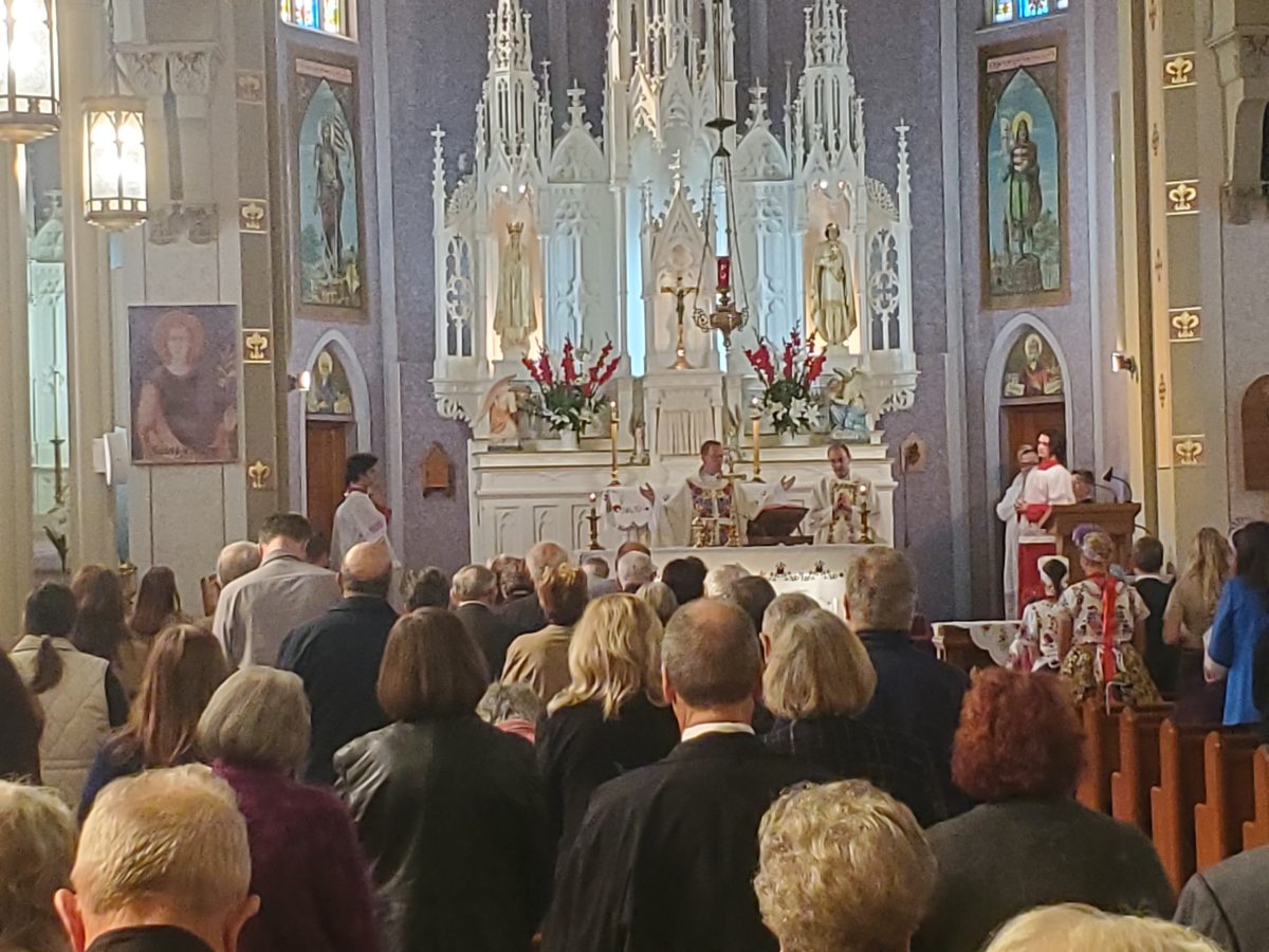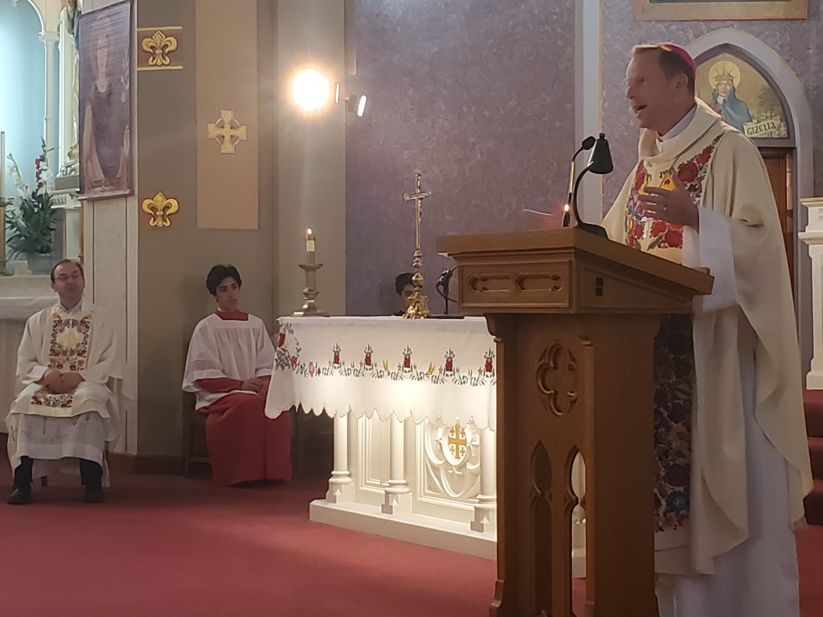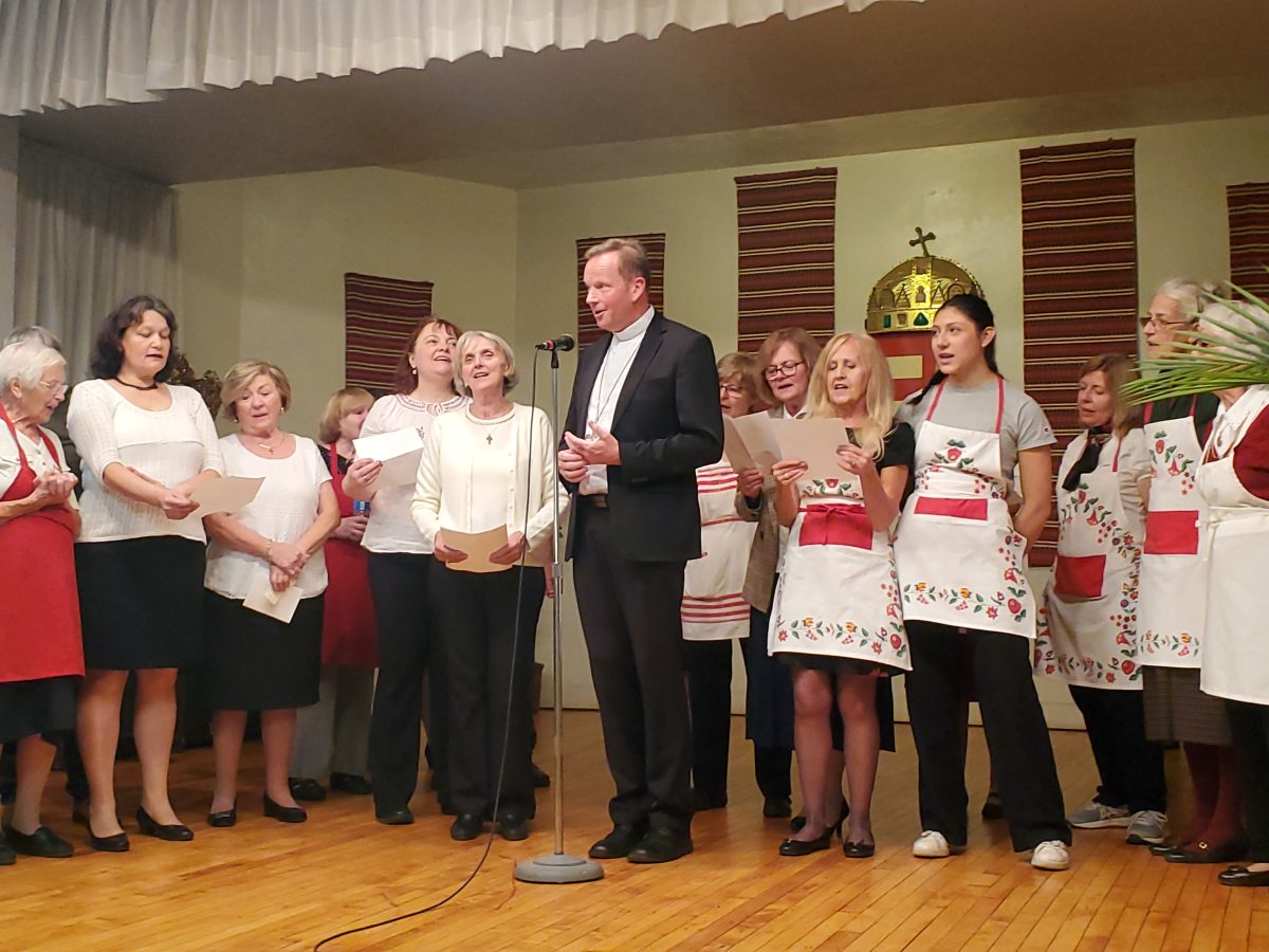 St. Emeric parishioners sing in honor of Bishop Fabry. See it here.