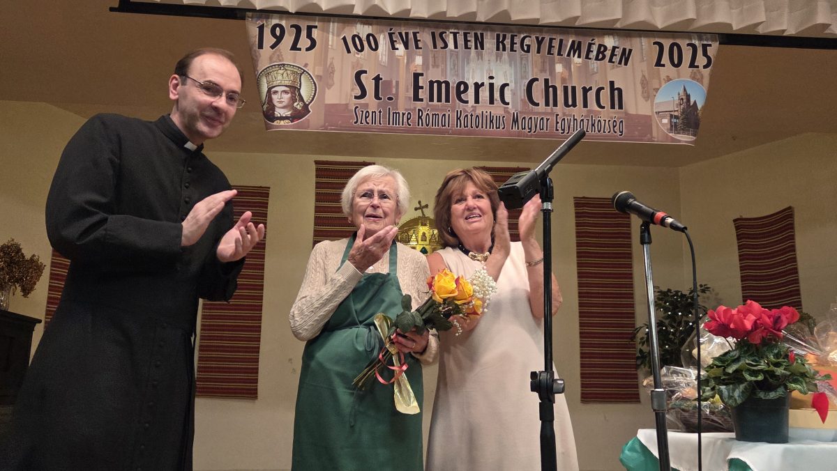 On Sunday, November 9, 2025, we welcomed Bishop Martin Amos who celebrated with us our patronal feast day, Saint Emeric, and the 100th anniversary of the consecration of our church building. We were very happy to have him here with us as we celebrated our feast day and the centennial anniversary. We warmly welcomed everyone who joined us that day at this very special celebration. We appreciate your presence and your support. After the Holy Mass we continued celebrating the day with a festive banquet in the Church Hall. Between the two programs nearly 250 people gathered together for a group picture in celebration of the 100th anniversary of the consecration of our church building. The pictures speak of the great celebration! Saint Emeric, pray for us!