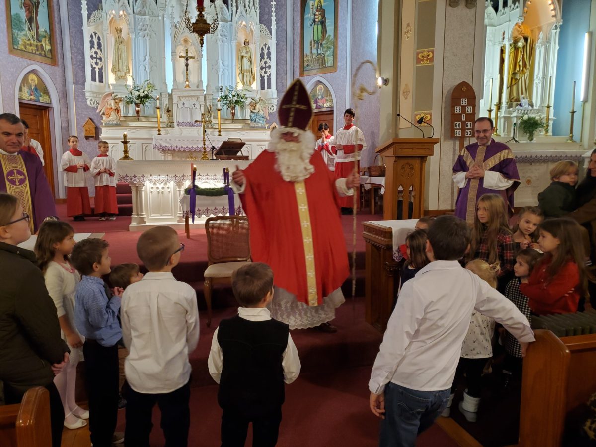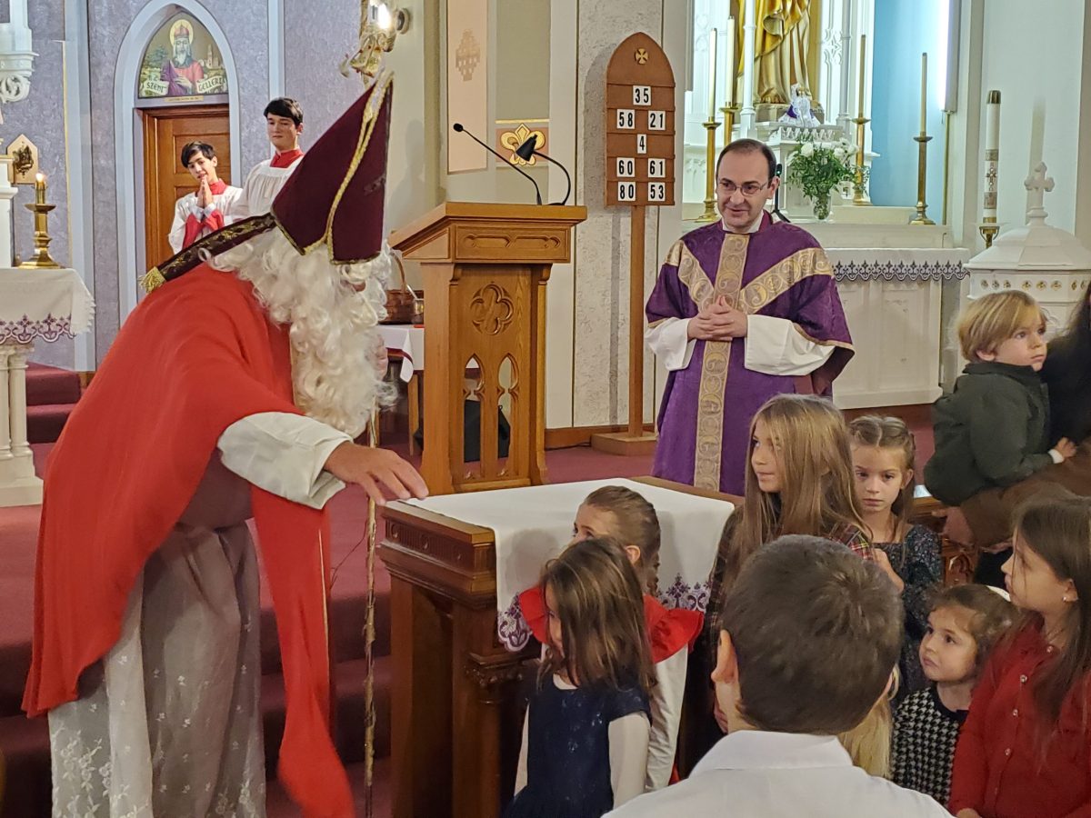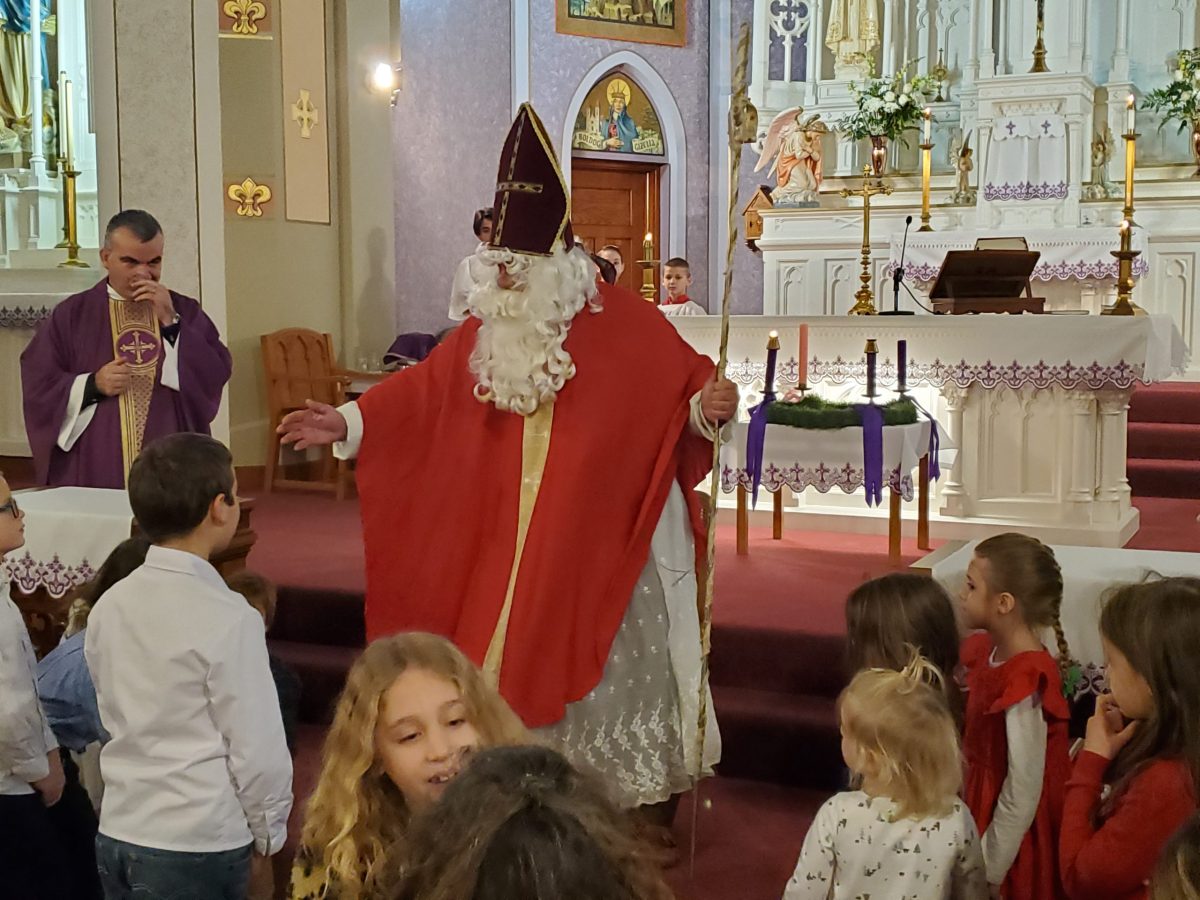 ST. NICHOLAS, MIKULÁS, VISITS THE CHILDREN AFTER MASS – DECEMBER 3, 2023