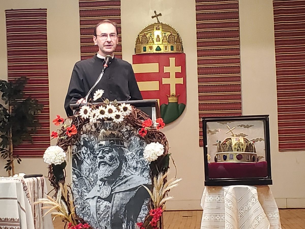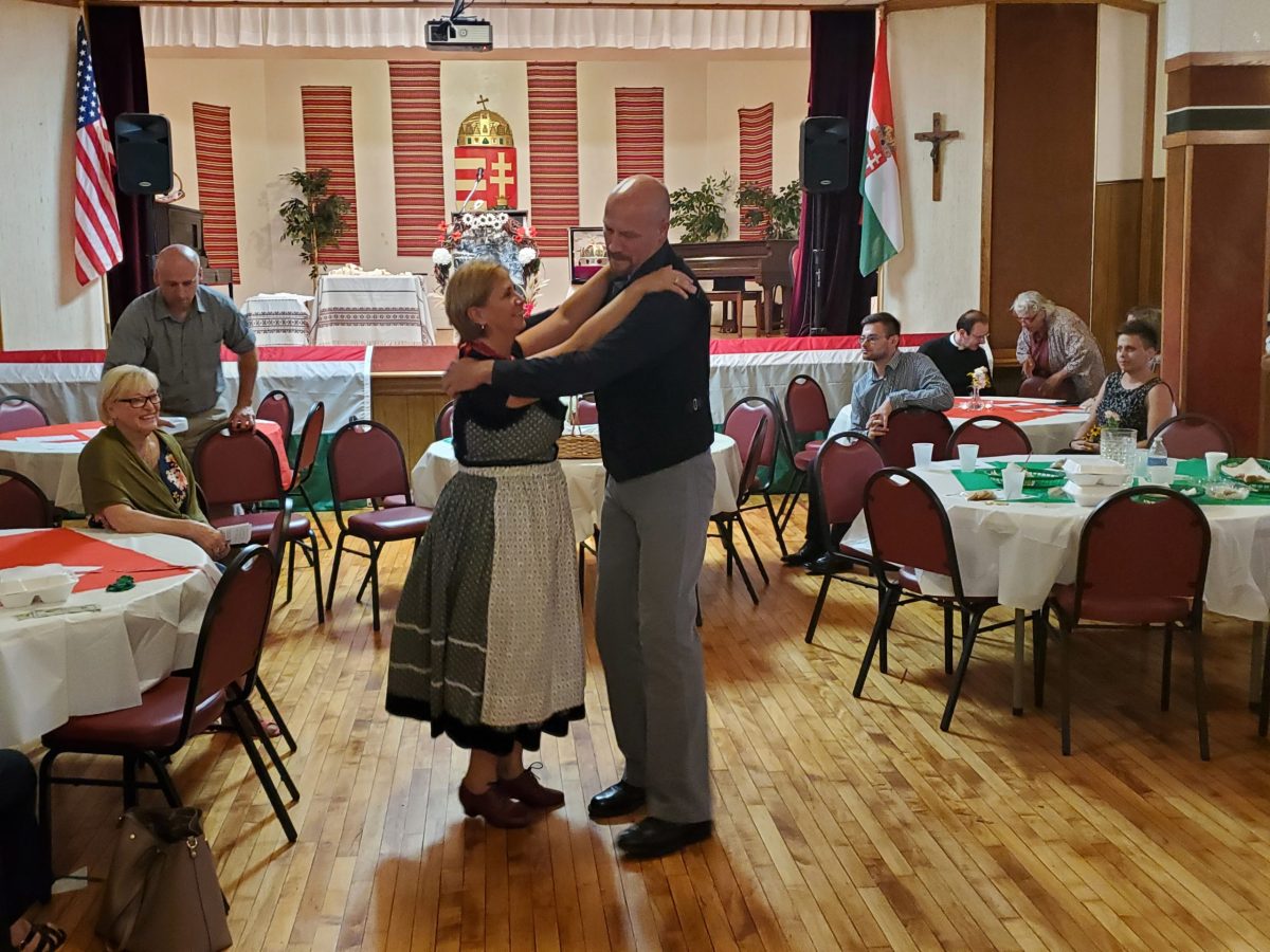 Saint Stephen Day festivities were celebrated at St. Emeric Church on Sunday, August 21, 2022, in honor of Hungary’s first king and patron saint. Following the solemn Mass, a picnic was held in the church’s main hall due to the inclement, rainy weather. Dr. Csaba Krasznai, honorary consul for the Hungarian government in Cleveland and Bishop of the Hungarian Reformed Church was the keynote speaker at the afternoon celebrations. A good time was had by the many in attendance who enjoyed great food, drinks, music and a folk-dance performance by Aniko Balassy and Laszlo Tihányi..